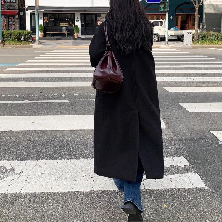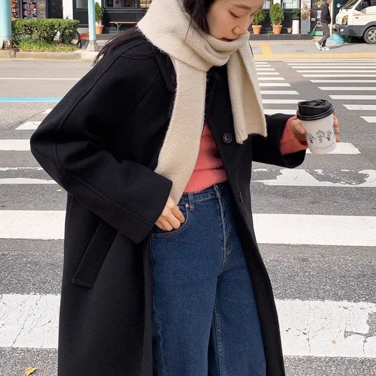 ロングコート レディース 韓国 ファッション 上品 清楚 ウール調 ブラックコート