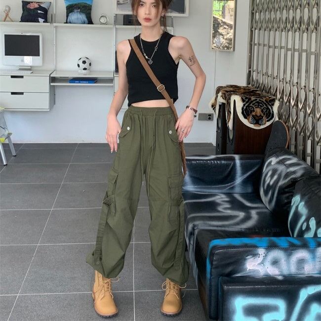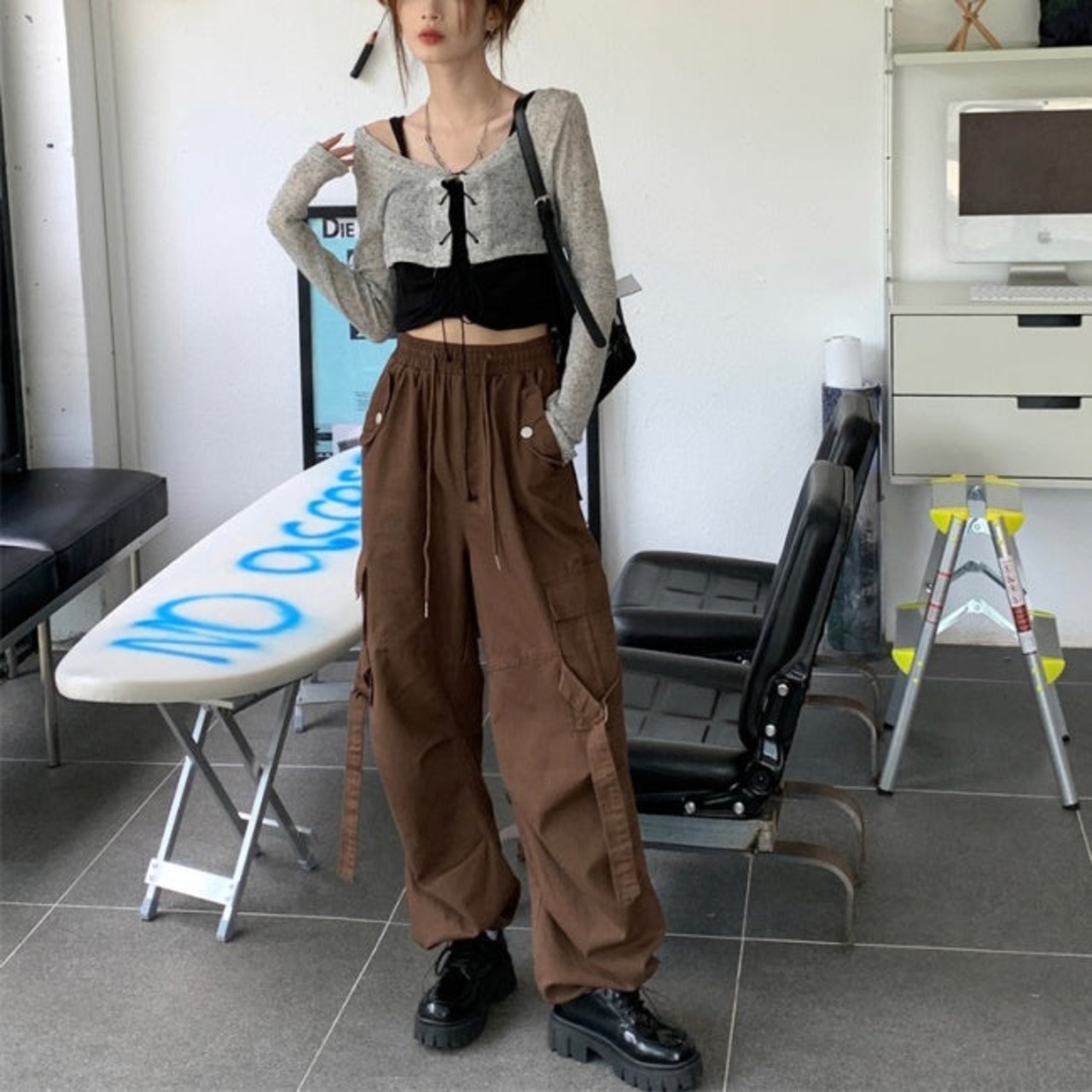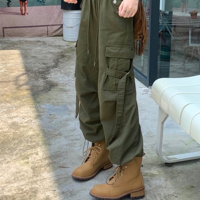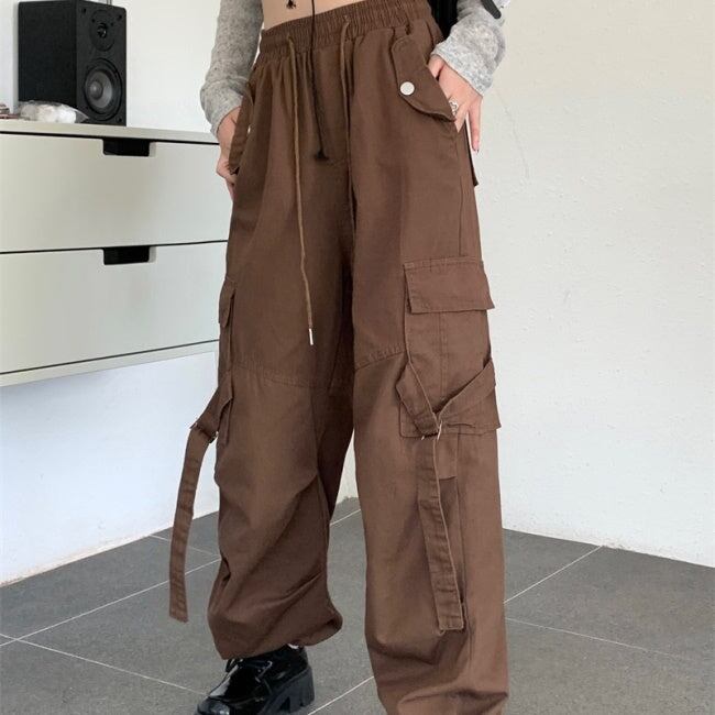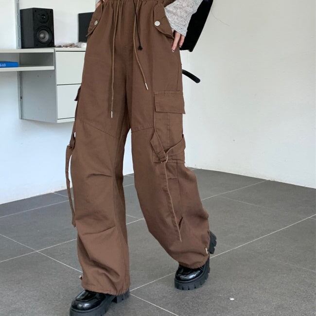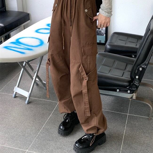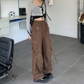ワイド カーゴパンツ レディース 韓国 ファッション ペインター パンツ カーキ/ブラウン/ブラック