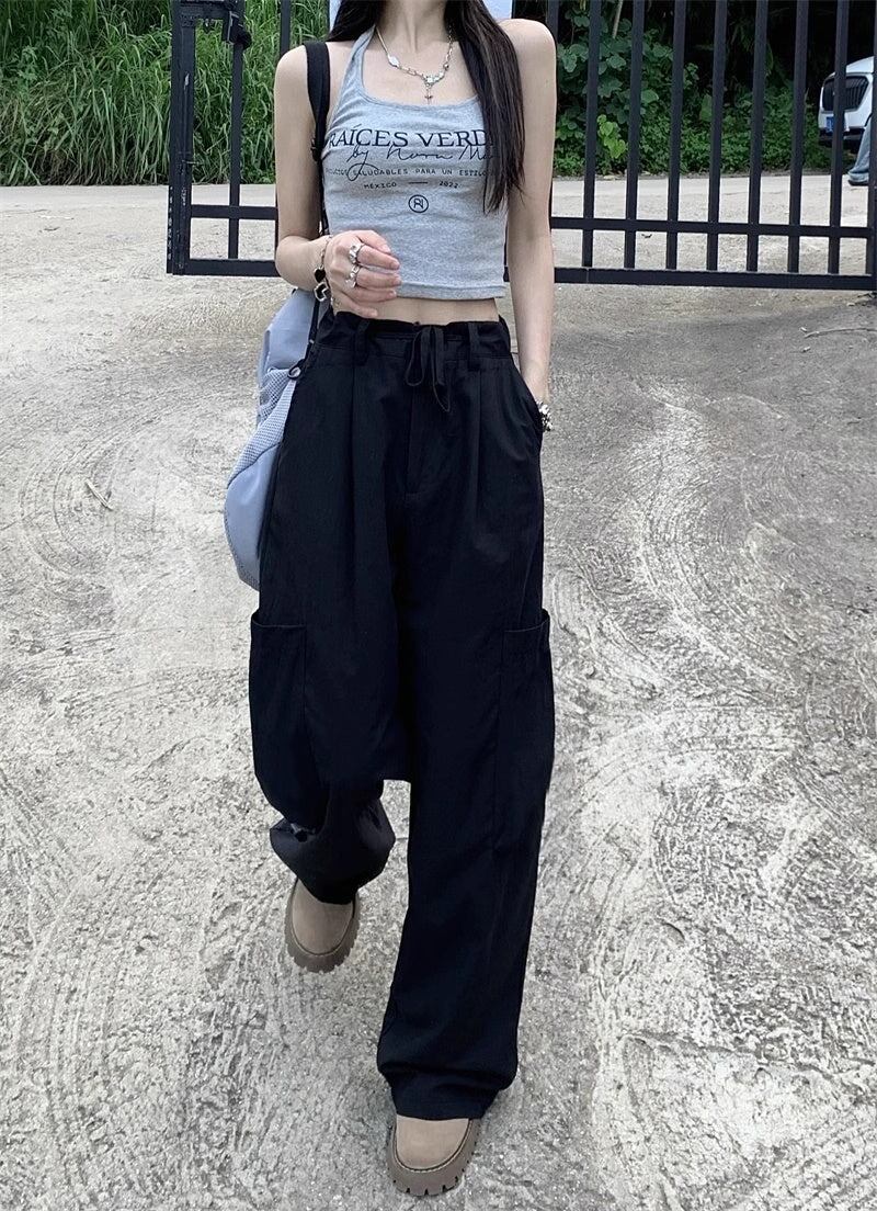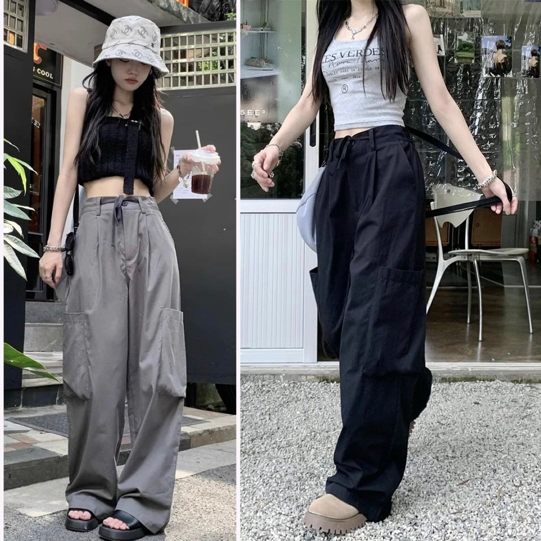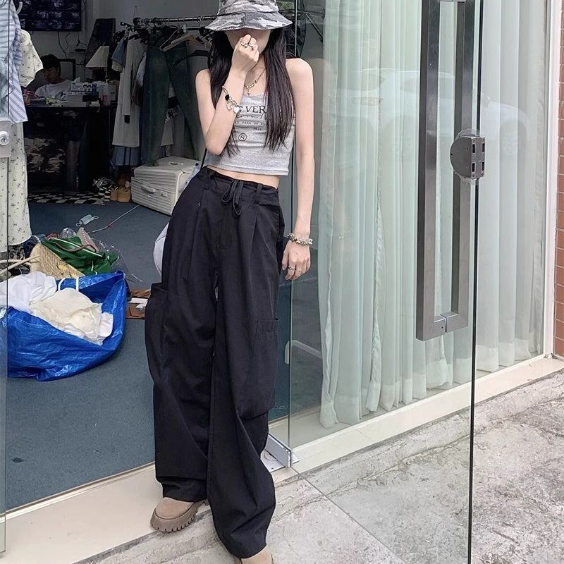 カーゴパンツ レディース 韓国 ファッション カジュアルパンツ ワイドフィット おしゃれ 無地 ロング ウエストゴム