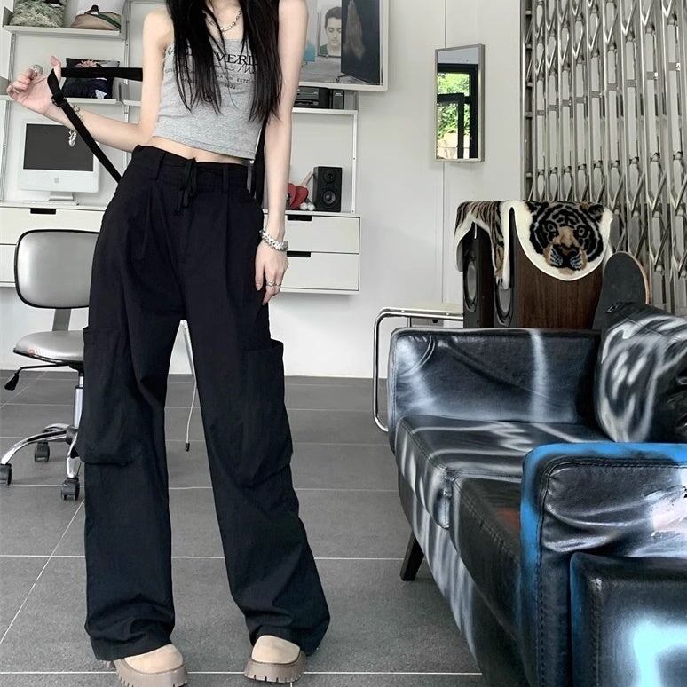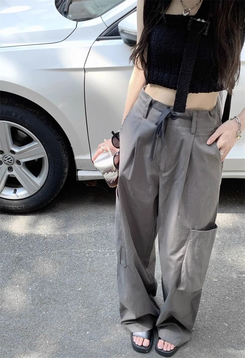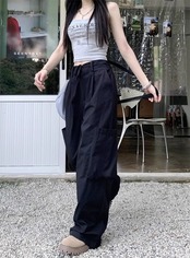 ワイド カーゴパンツ レディース 韓国 ファッション リラックス ワイドフィット ウエスト調整