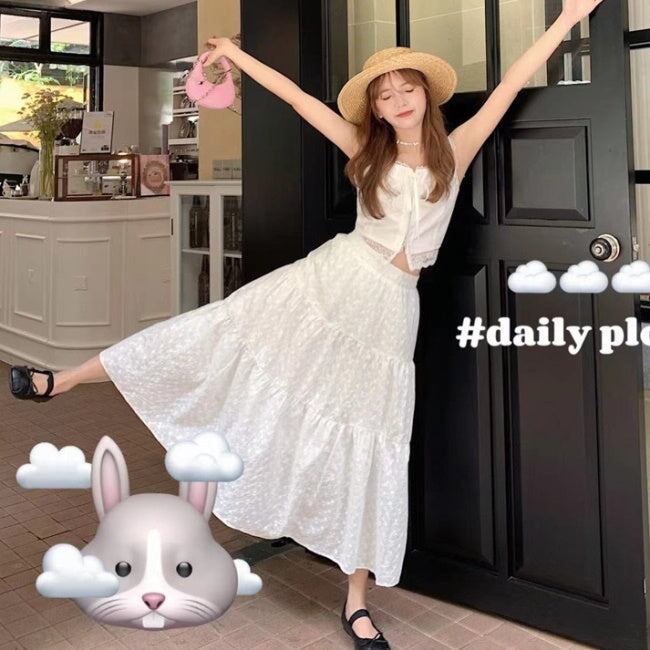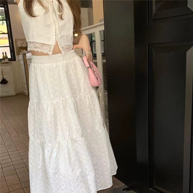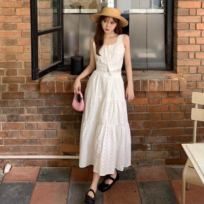 ノースリーブ セパレート ワンピース 韓国 夏 セットアップ レース ワンピ 上下セット 白コーデ クロップドトップ マキシ ワンピース