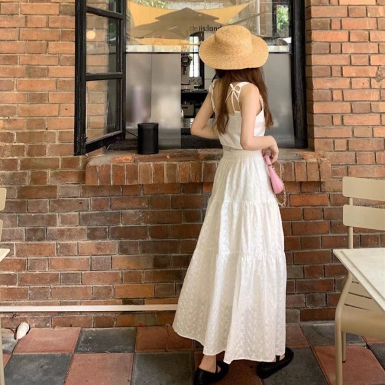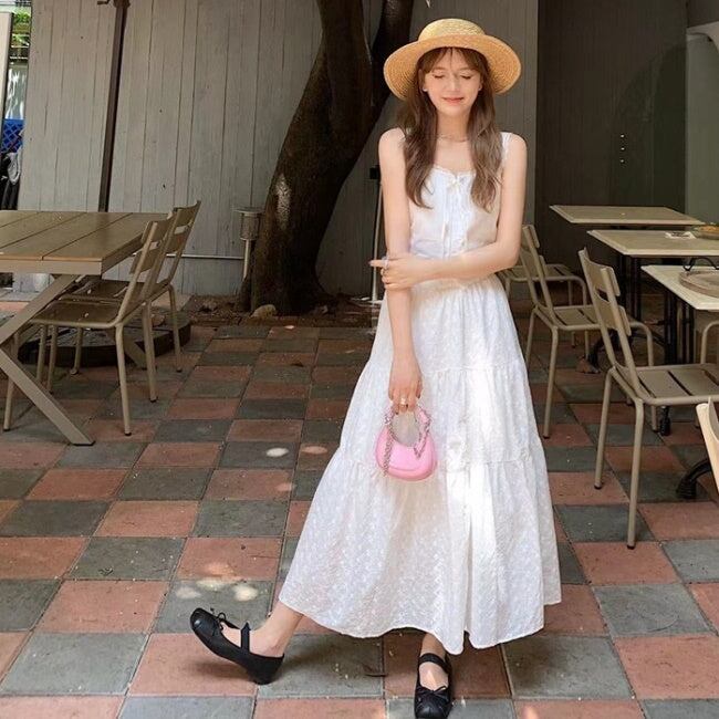 白コーデキャミソールとロングスカート♪ノースリーブ