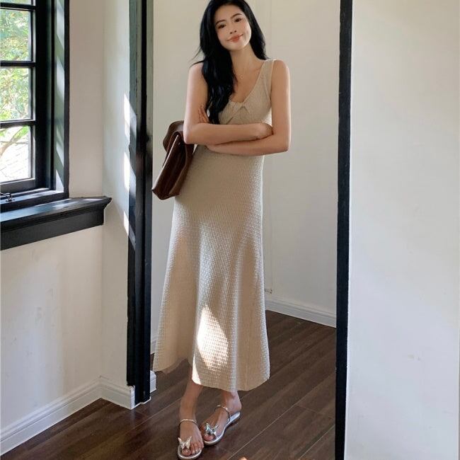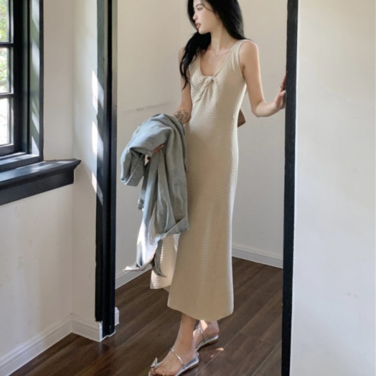 夏 ワンピース? レディース 韓国 ファッション ノースリーブ ミモレワンピース 夏コーデ おしゃれ リゾート お呼ばれ ワンピ