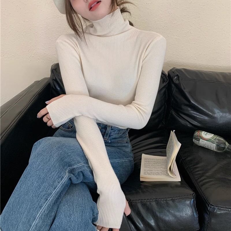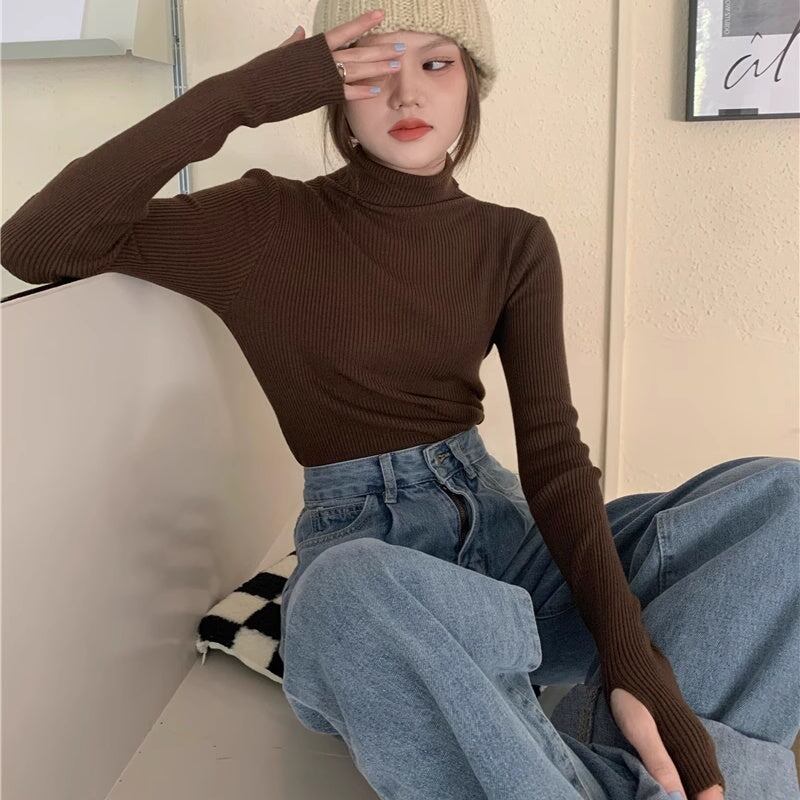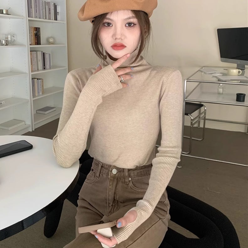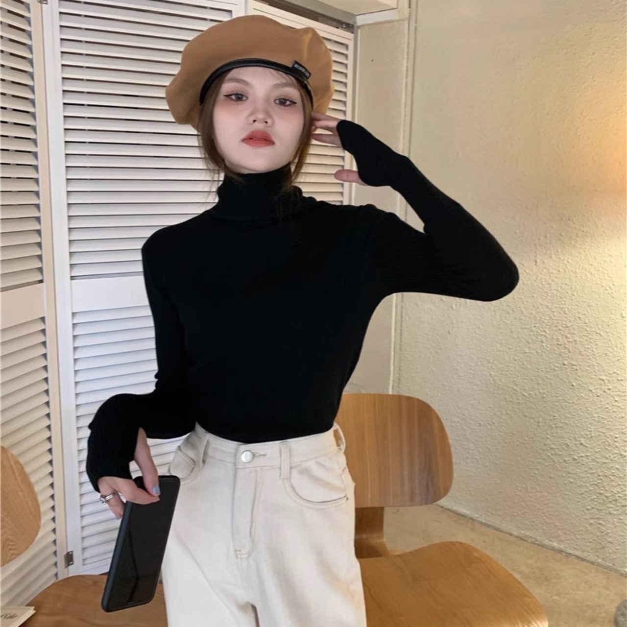 ハイネック ニット レディース 韓国 ファッション 指ぬき サムホール カラー豊富 リブニットソー