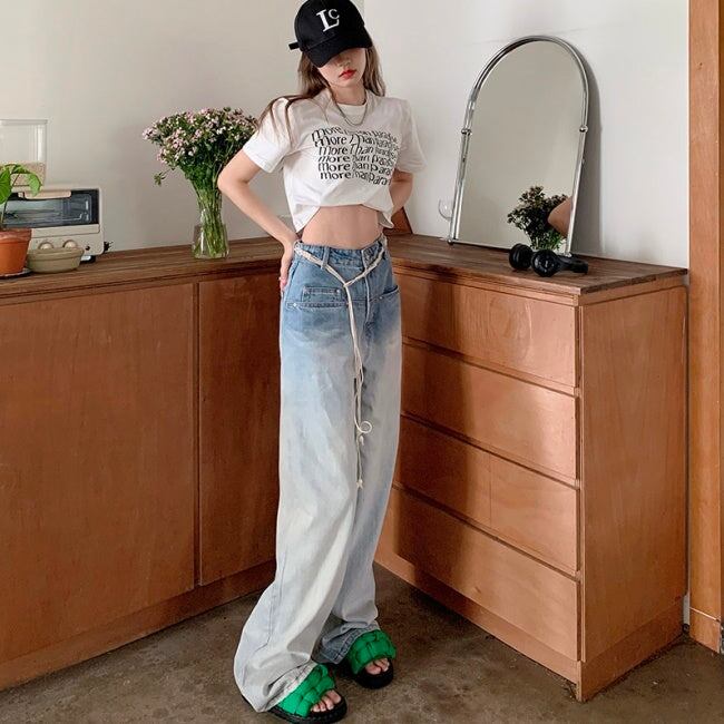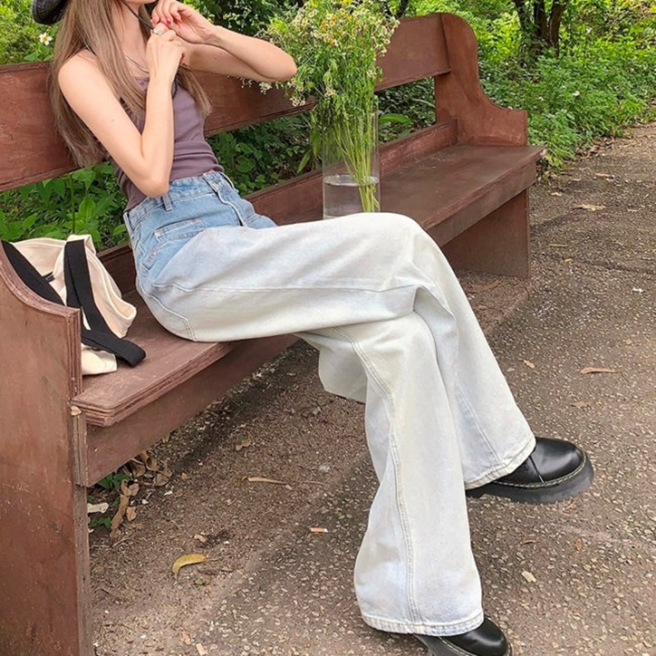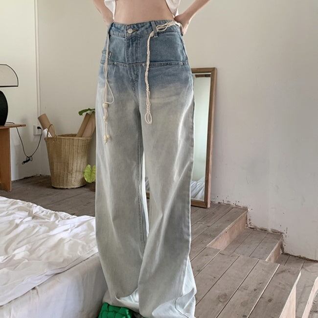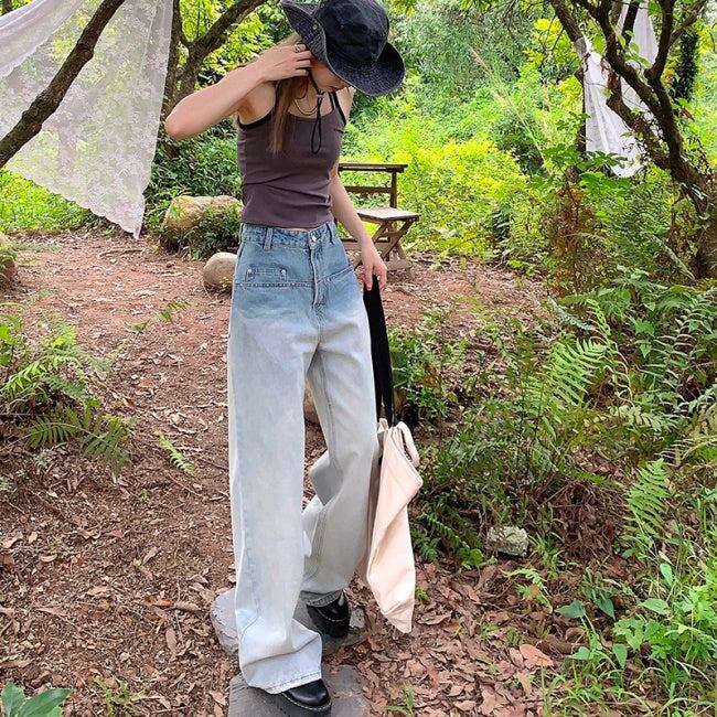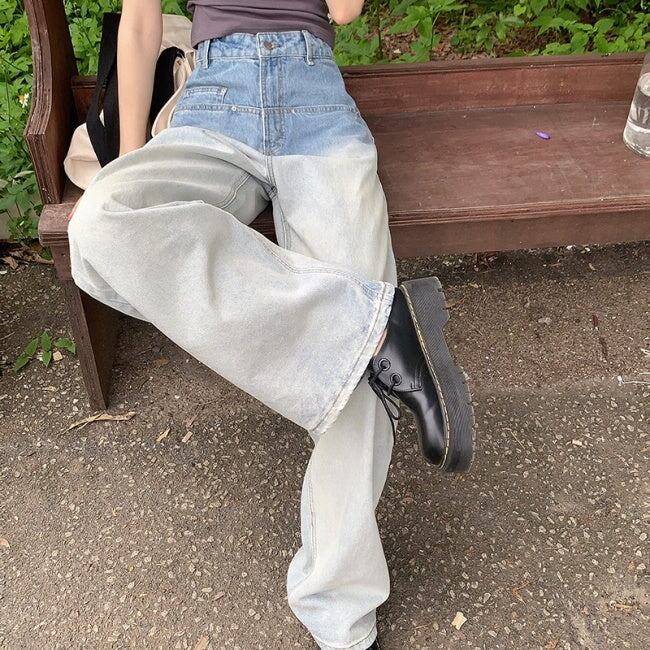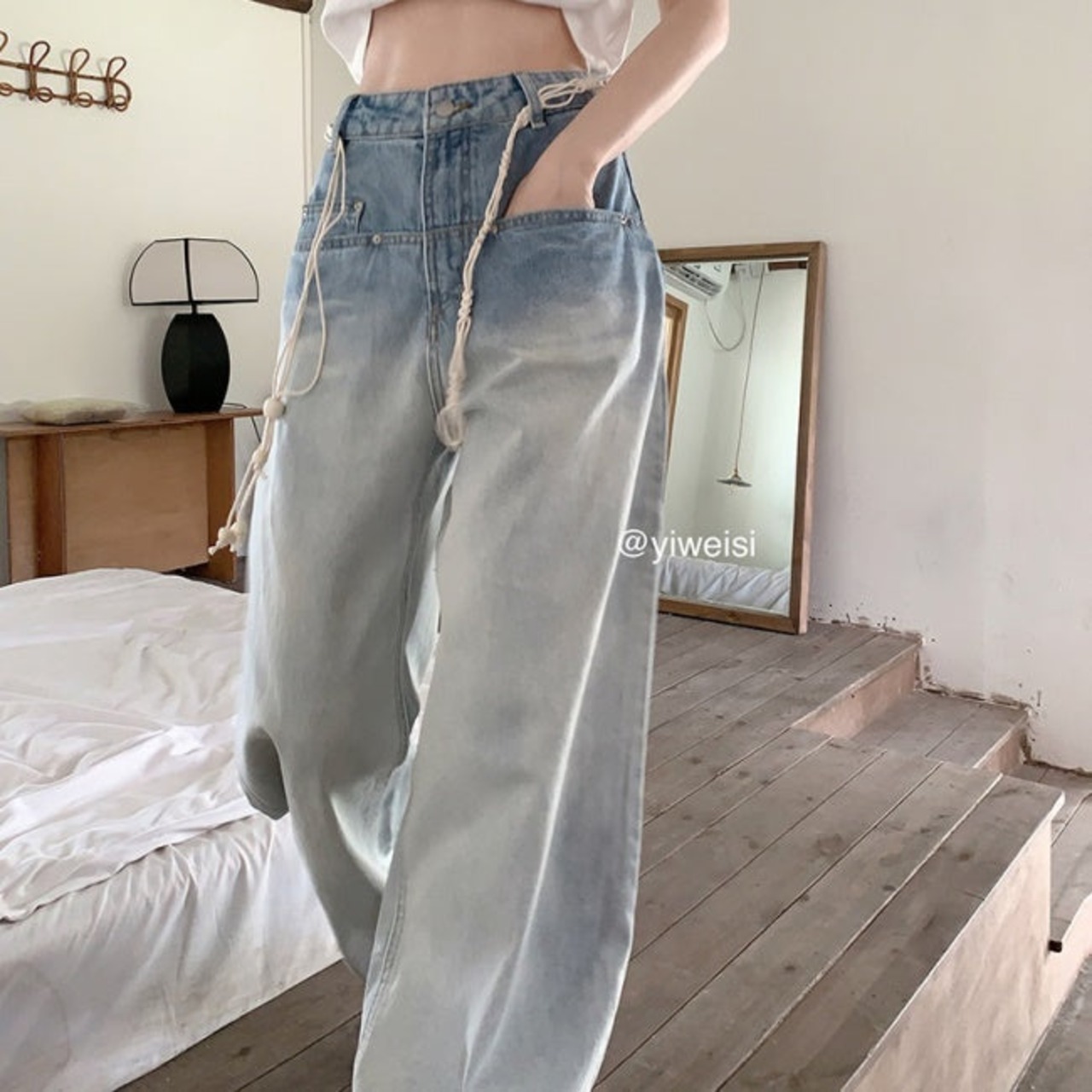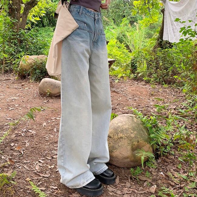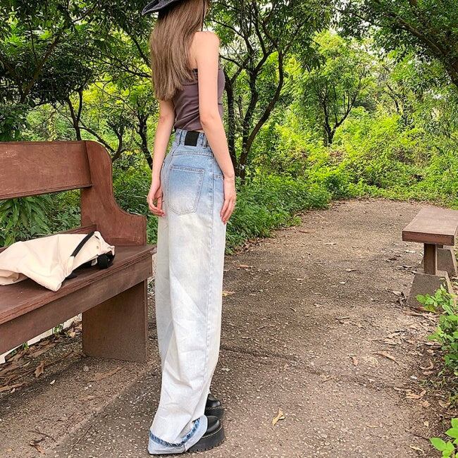 デニム モップパンツ レディース 韓国 ファッション ワイドパンツ ジーンズ デニムパンツ グラデーション ルーズフィット パンツ ビンテージ