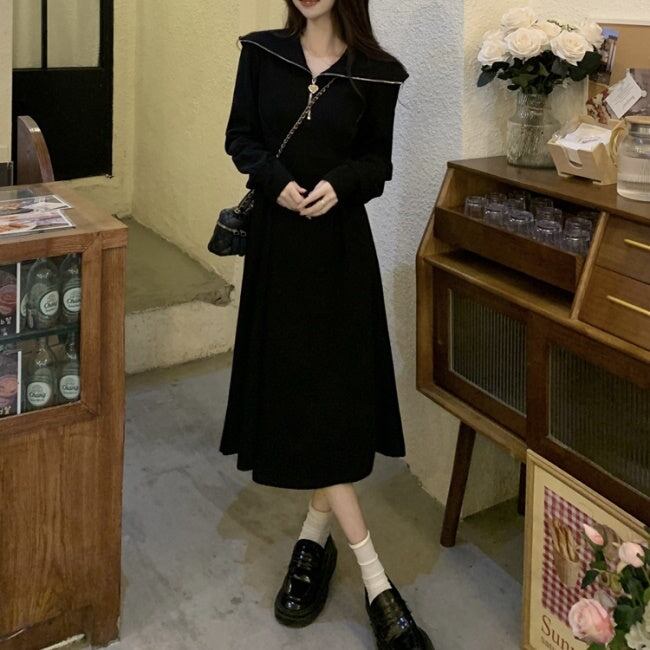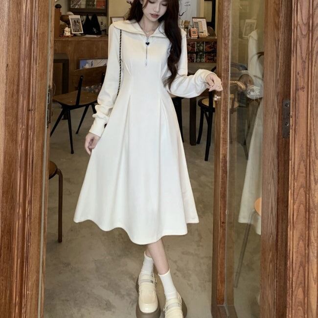 ポロワンピース Aライン 長袖 レディース 韓国 ファッション カットソー フレアワンピース ハーフジップ ハートチャーム