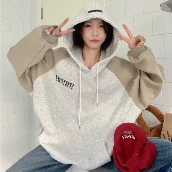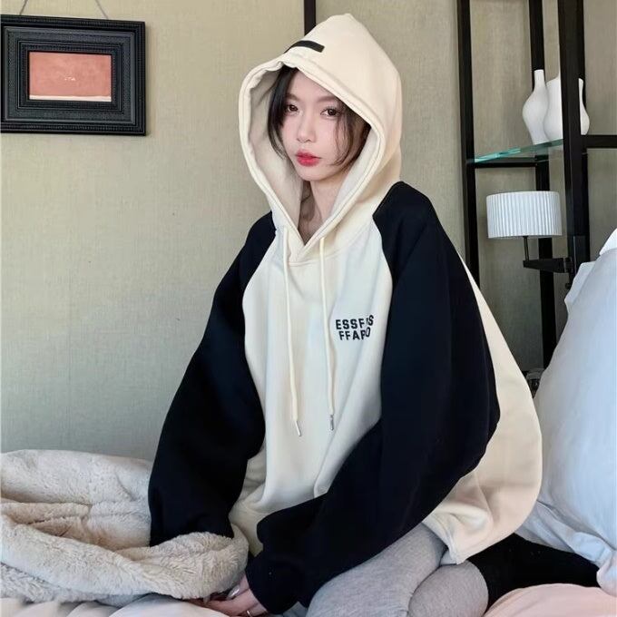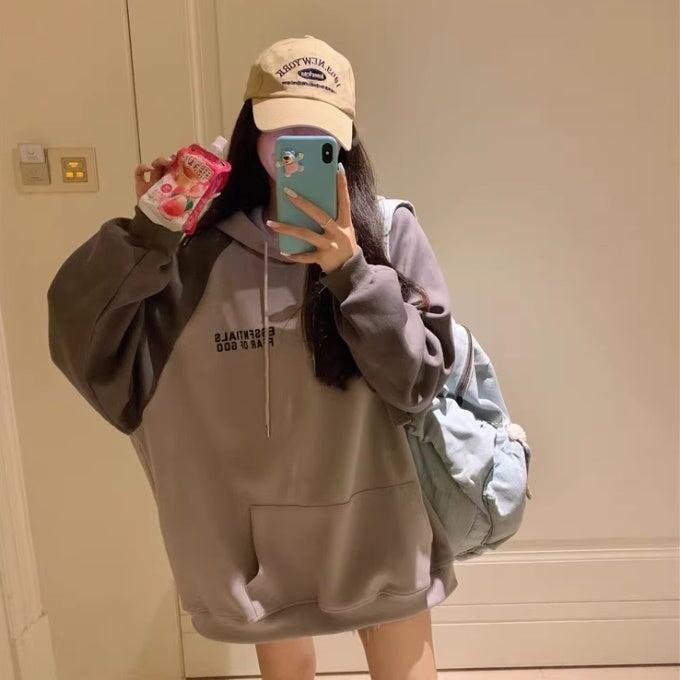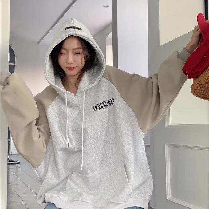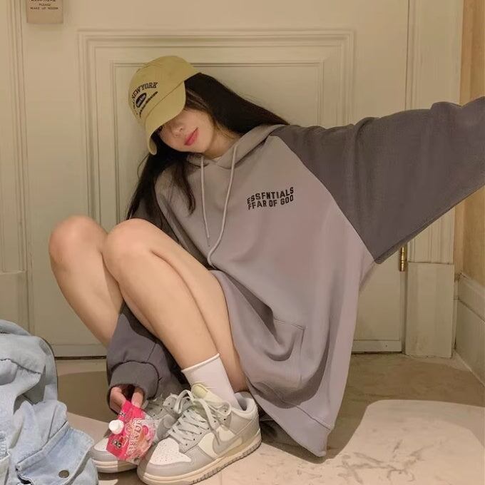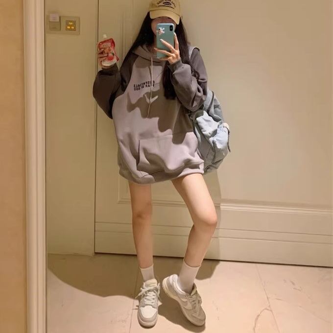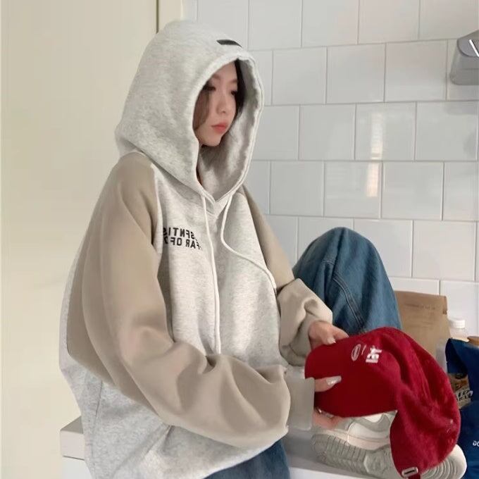 バイカラー ビッグ パーカー レディース 韓国 ファッション プルオーバー ロゴパーカー 秋冬 ビッグシルエット スウェットパーカー
