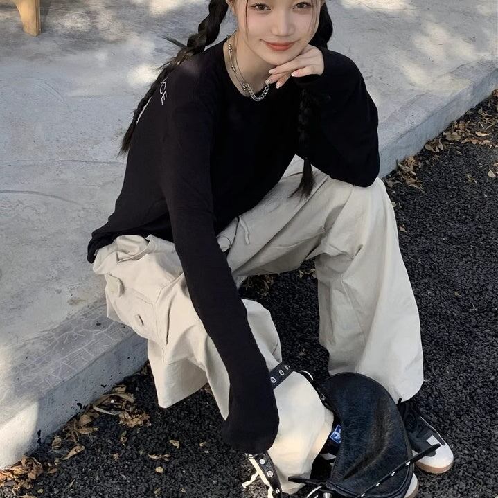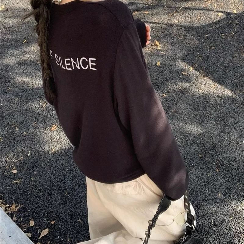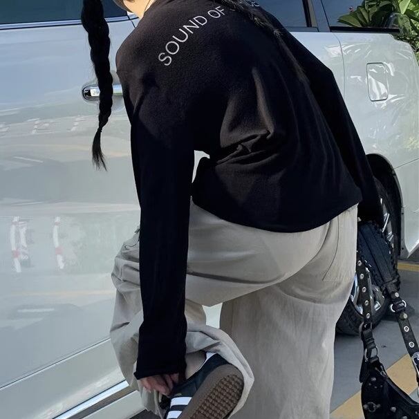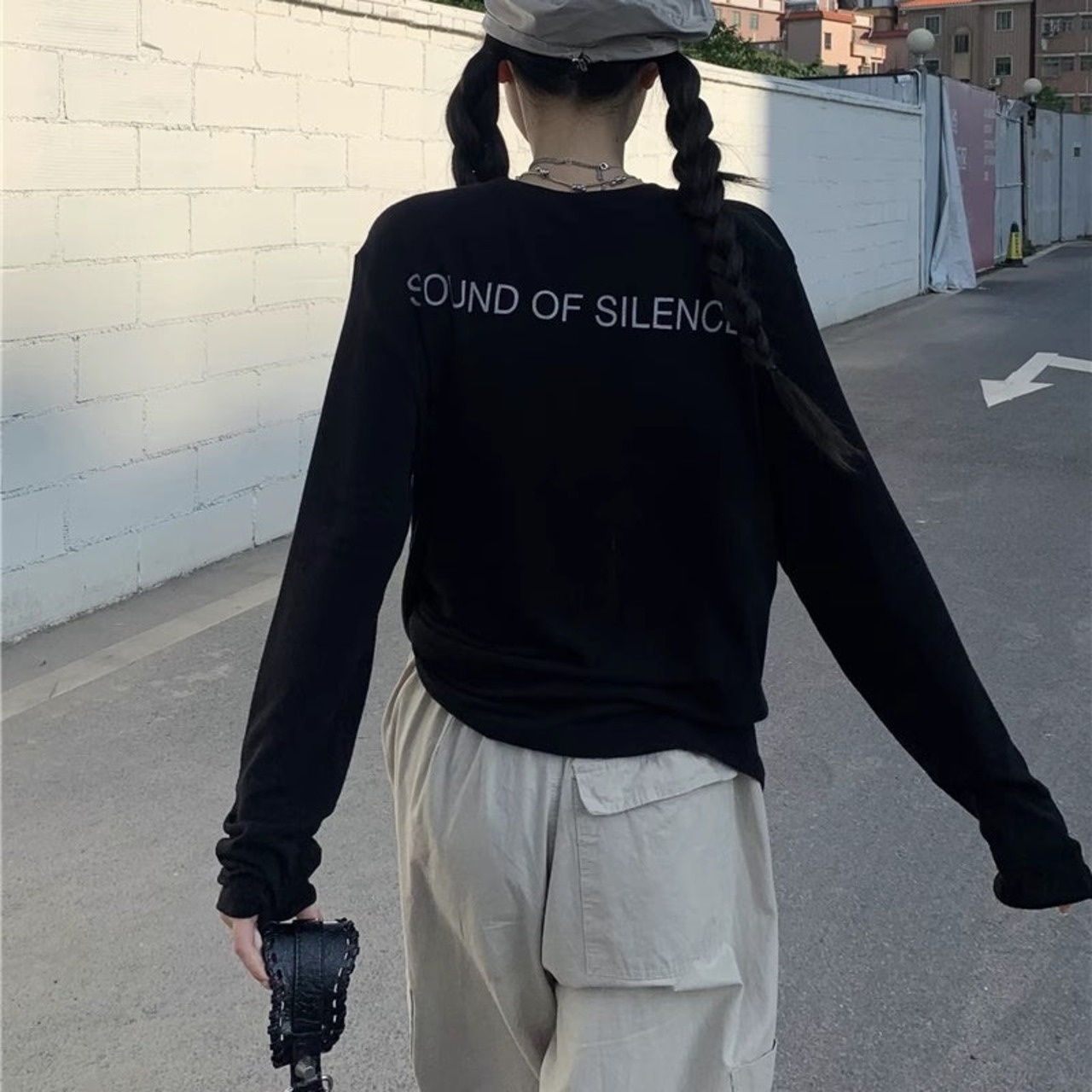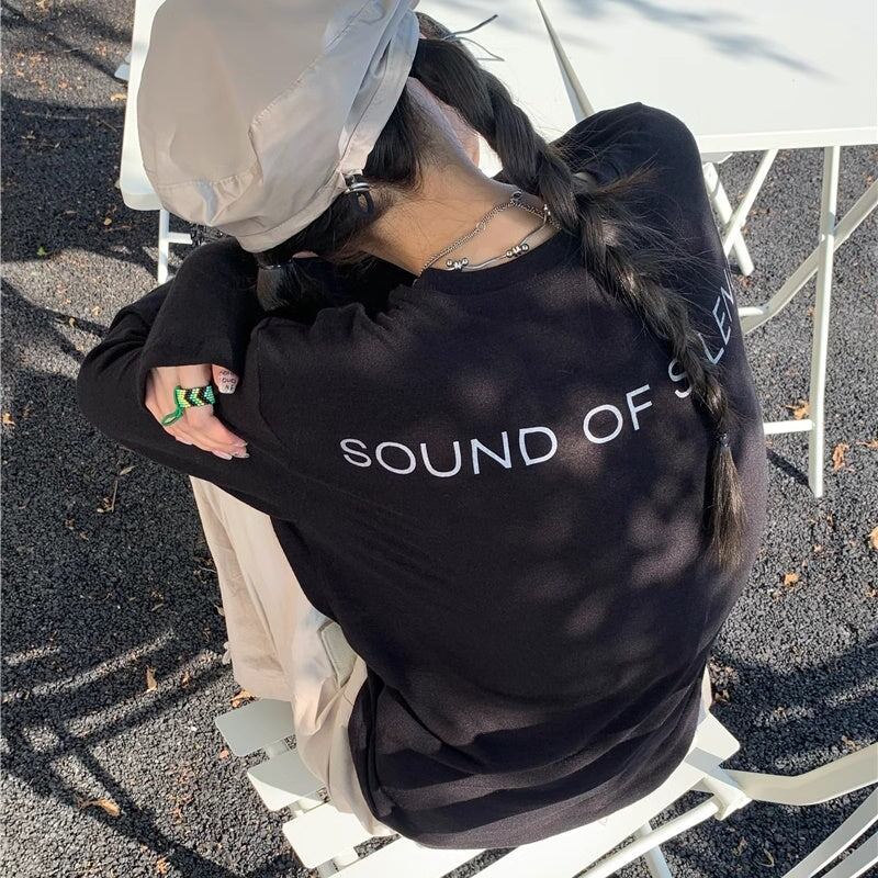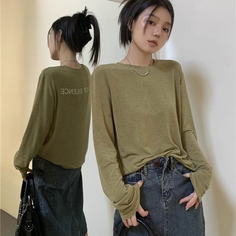 Tシャツ バックロゴ レディース 韓国 ファッション 長袖 トップス 薄手 とろみ ロング袖 バックプリント 無地 とろみ