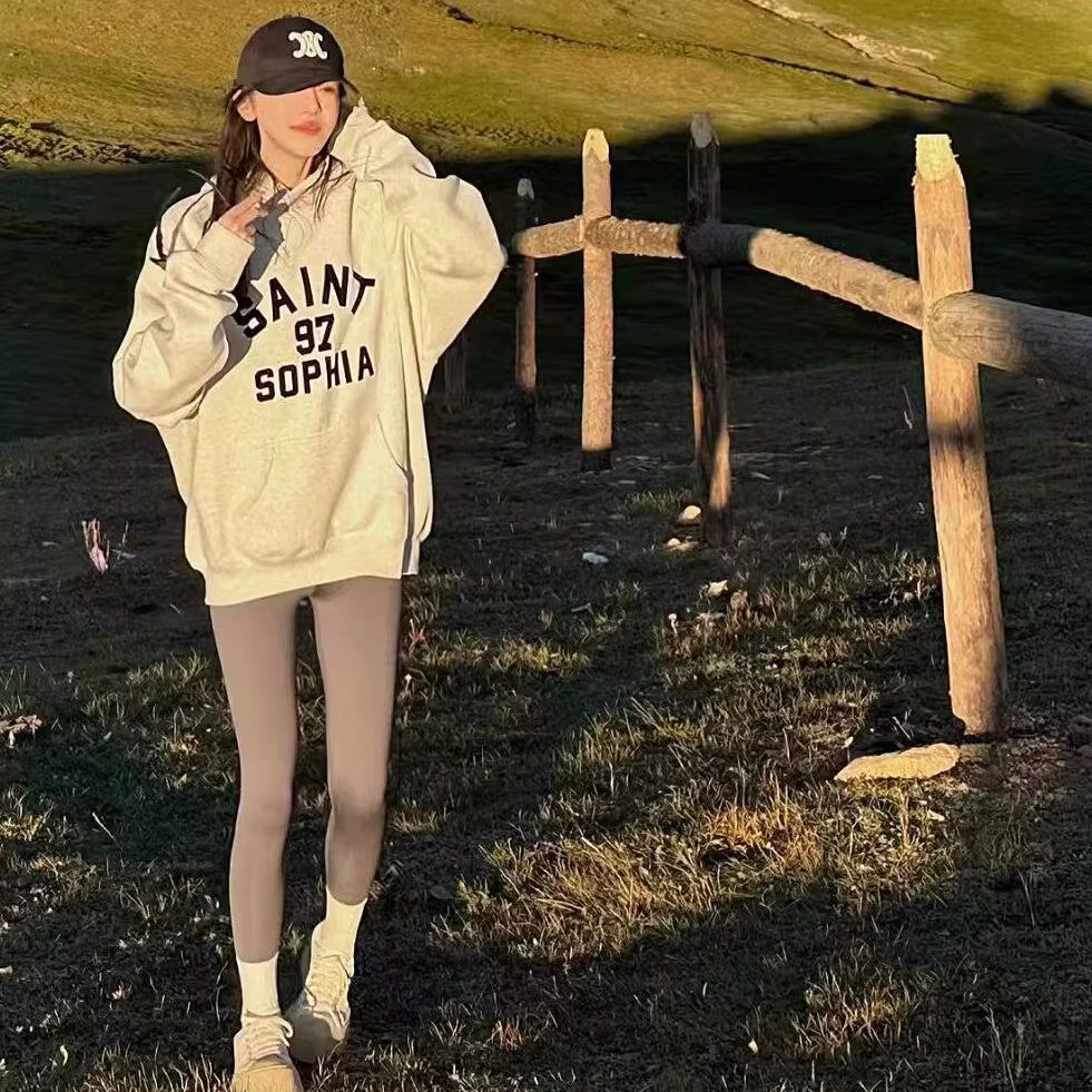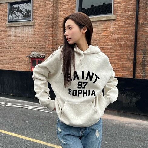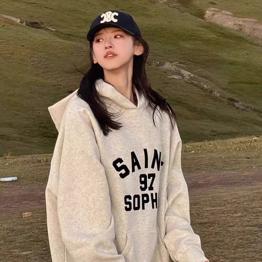 パーカー レディース 韓国 ファッション ロゴ プルオーバー トップス ヘザーグレー オーバーサイズ スウェットパーカー