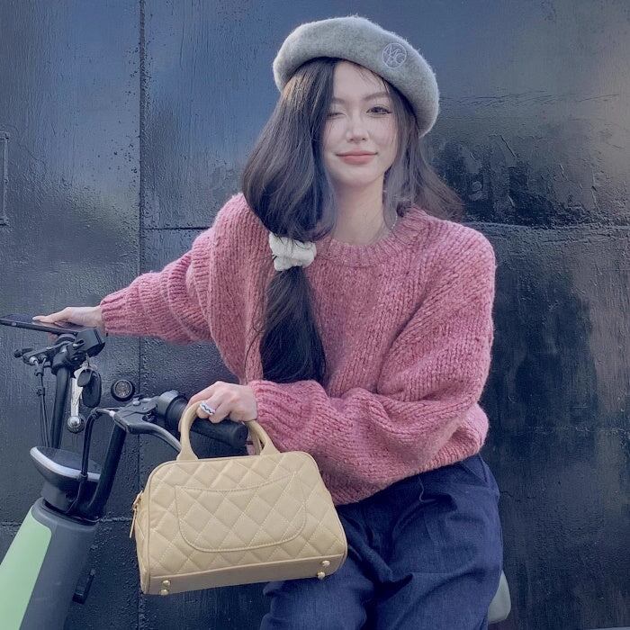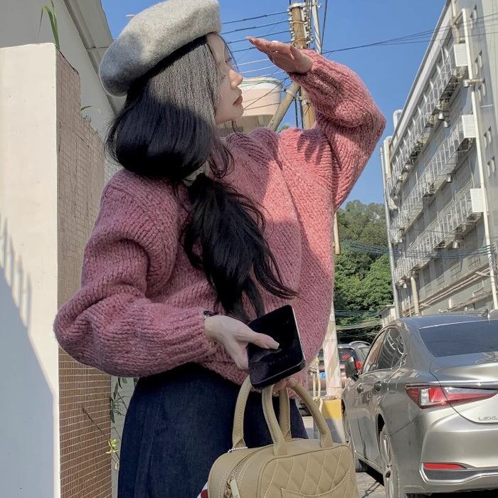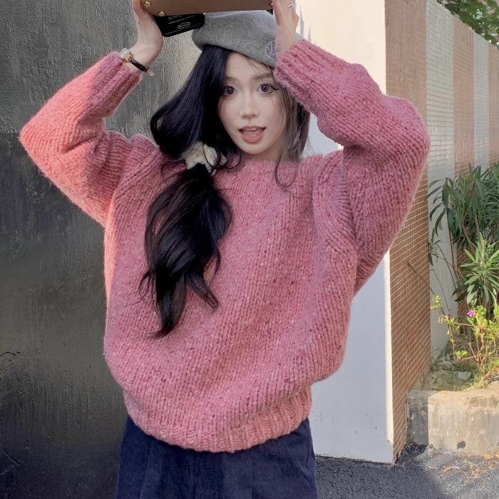 ピンク セーター レディース 韓国 ファッション 冬 ニット トップス バーブル ピンク ミックス ビッグシルエット