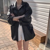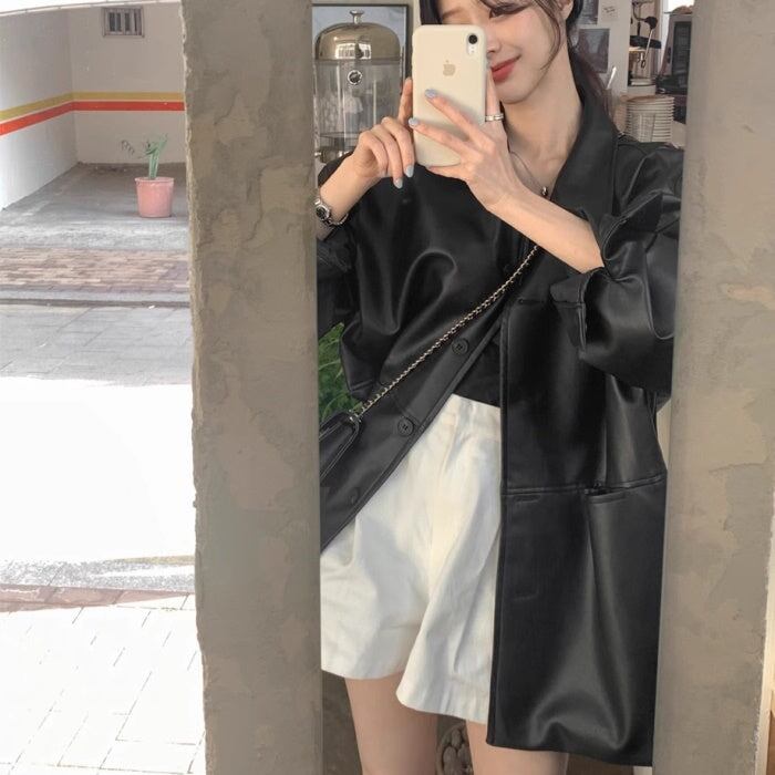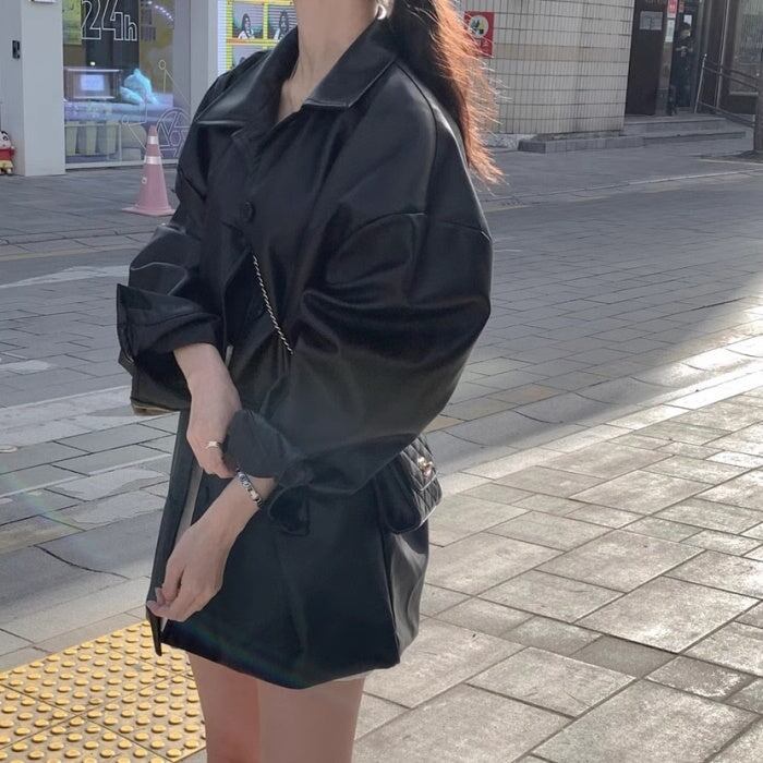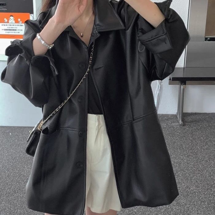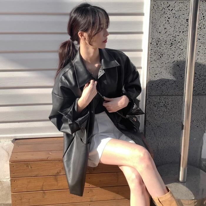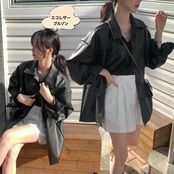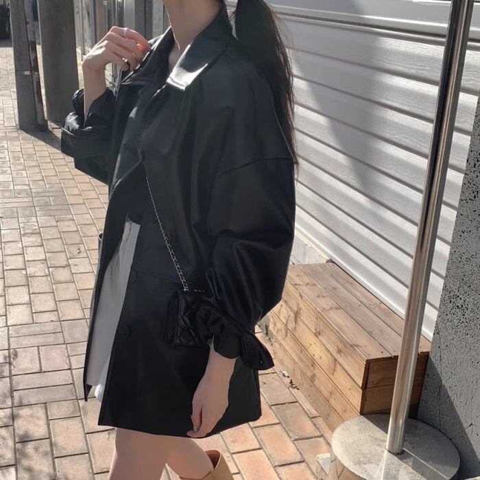 フェイクレザー ブルゾン レディース 韓国 ファッション エコレザー ロングジャケット オーバーサイズ 春 アウター