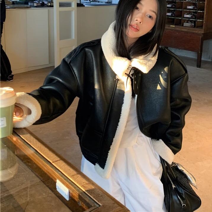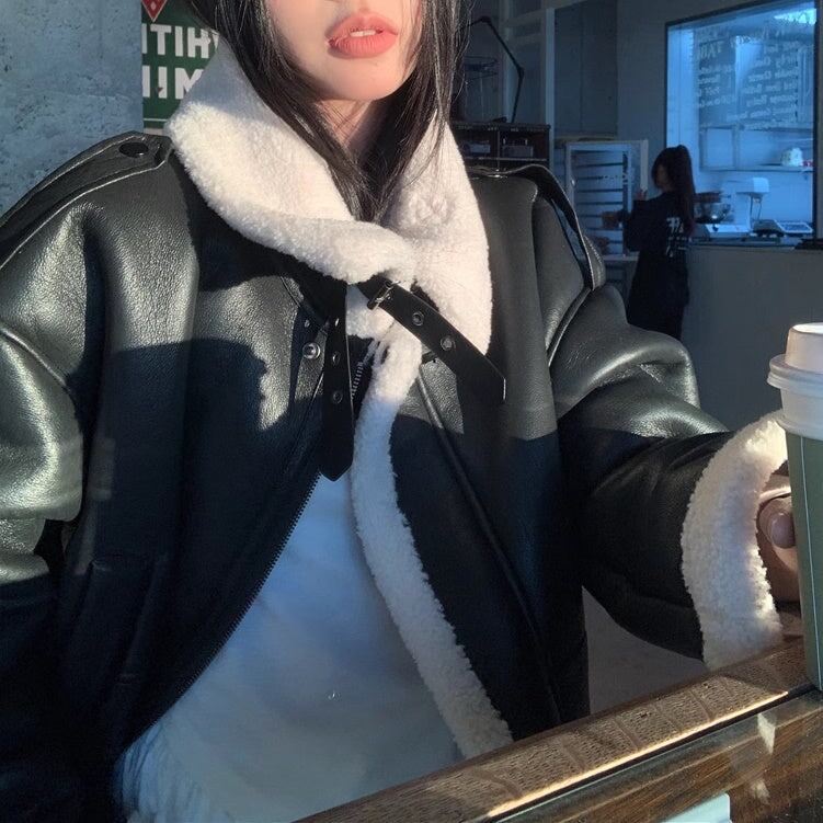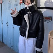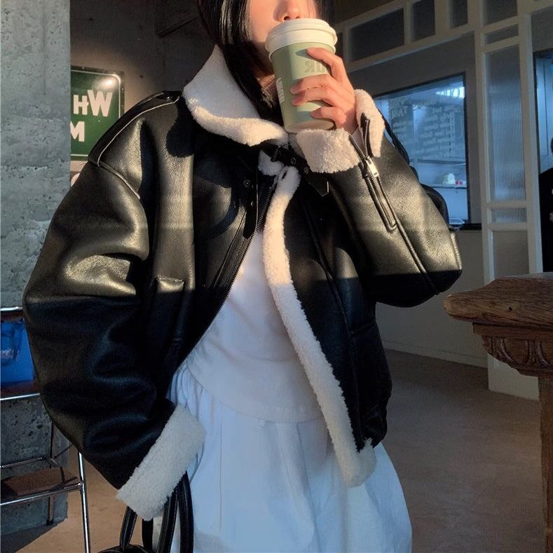 フェイクムートンジャケット レディース 韓国 ファッション 冬アウター おしゃれ 黒アウター 防寒 裏ボア 襟ボア