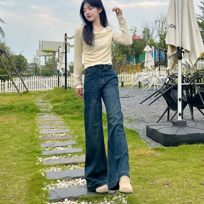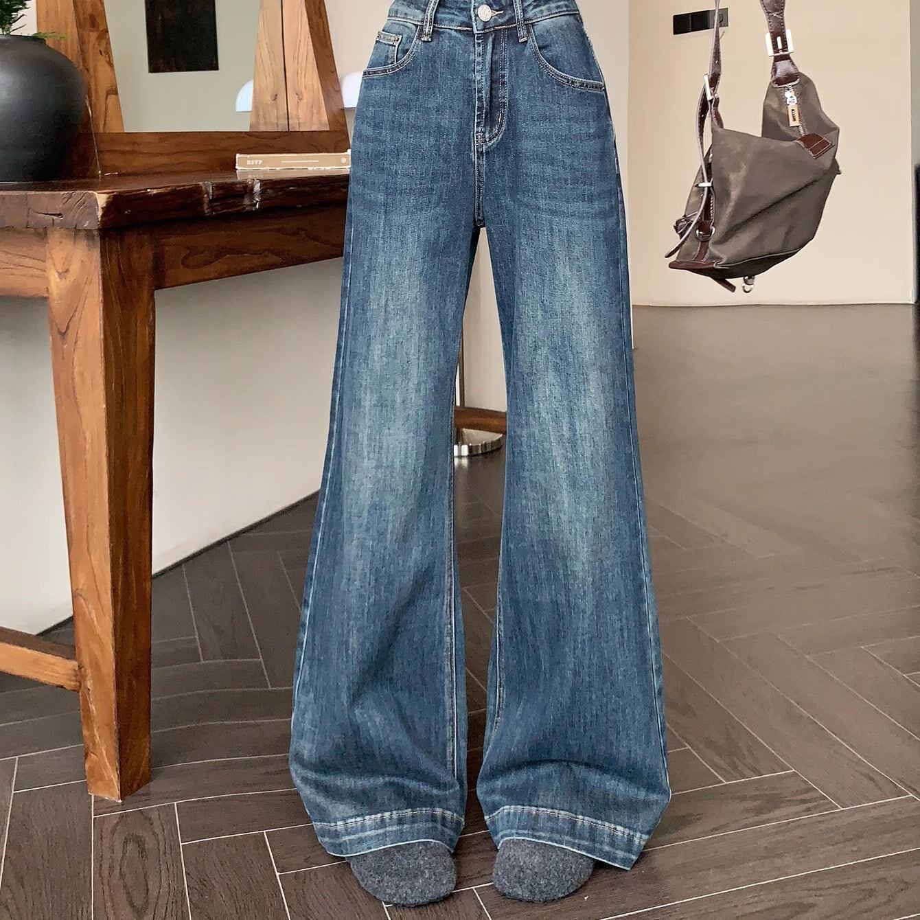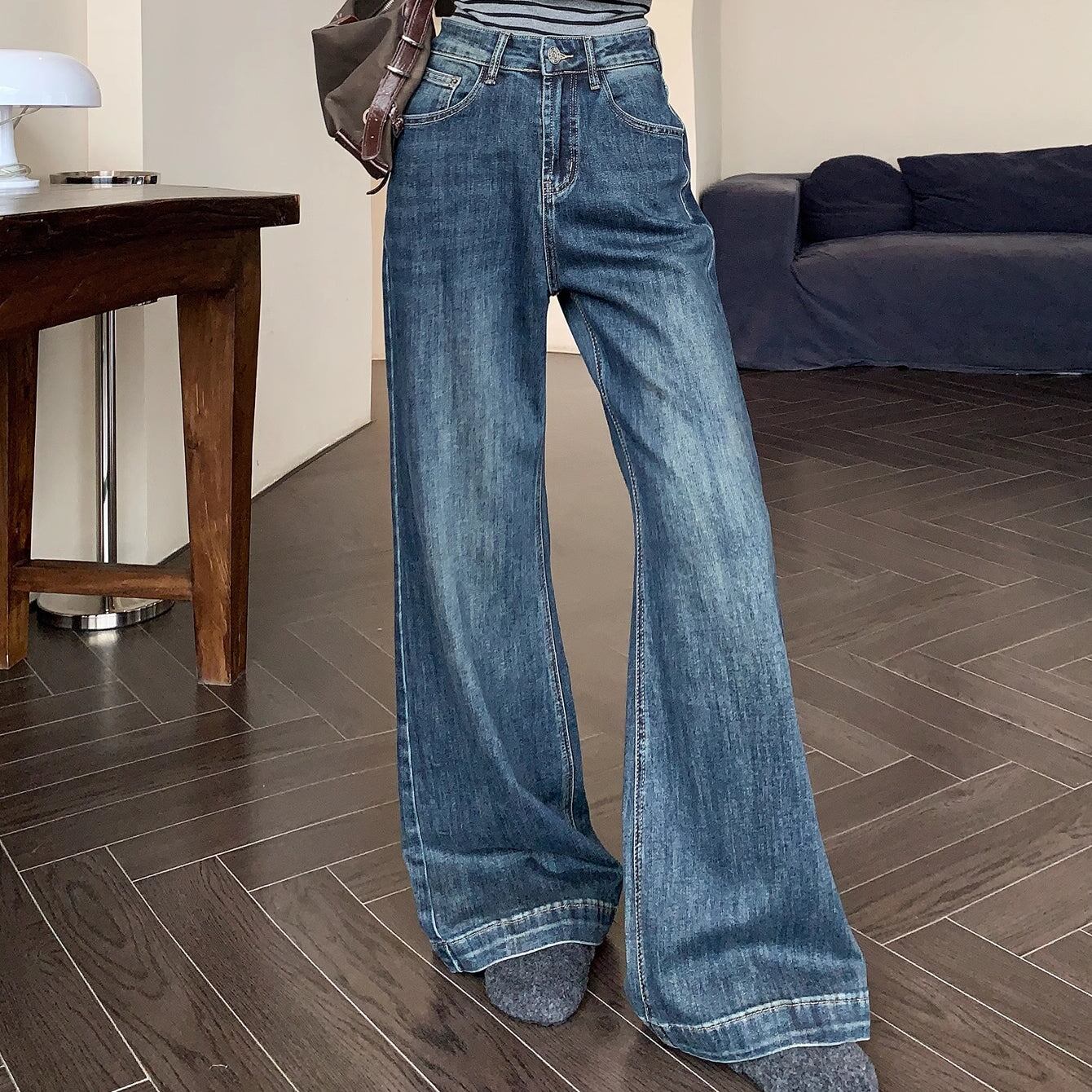フレア デニムパンツ レディース ワイドシルエット 韓国 ファッション ユーズド加工 ジーンズ きれいめ 大人カジュアル 冬ボトム
