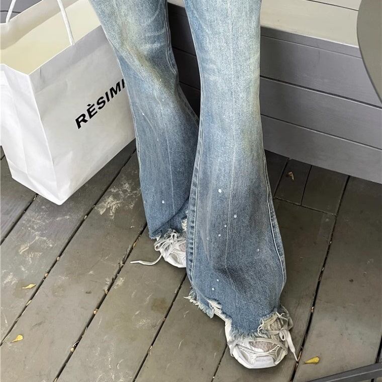 フレア デニムパンツ レディース 韓国 ファッション ダメージ加工 ブーツカットデニム
