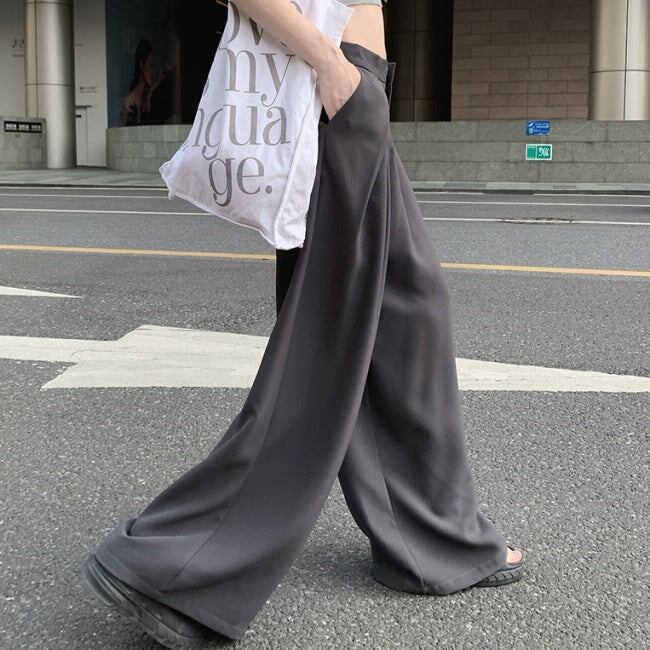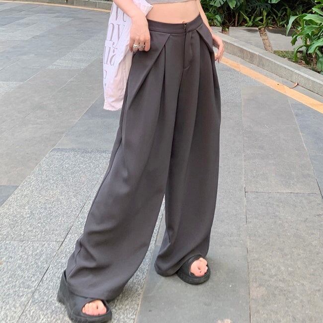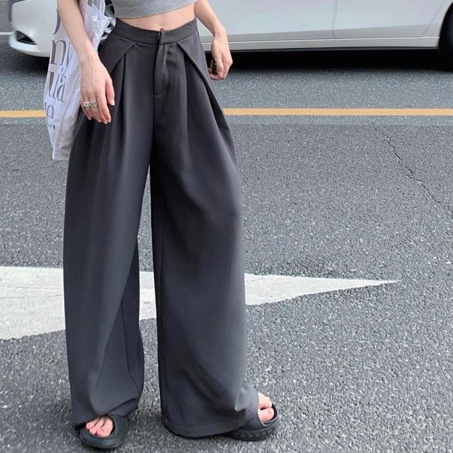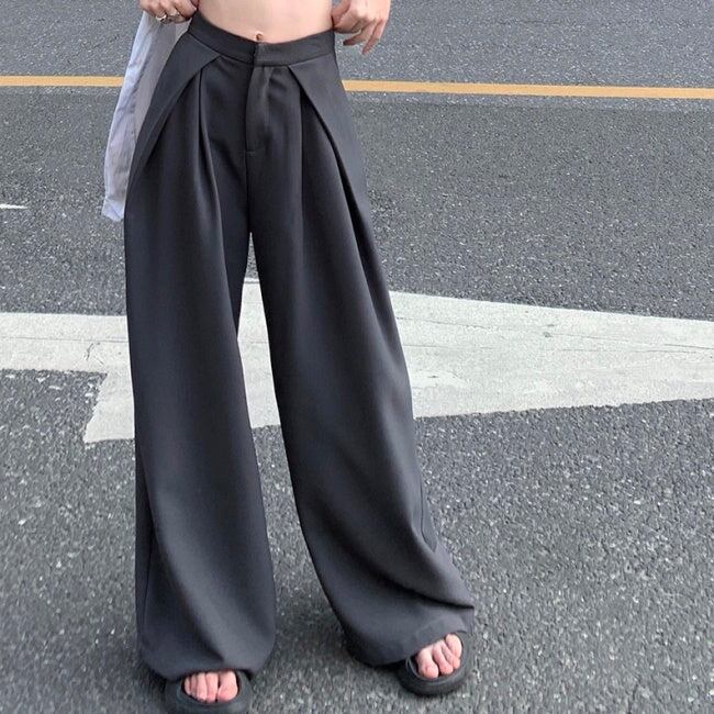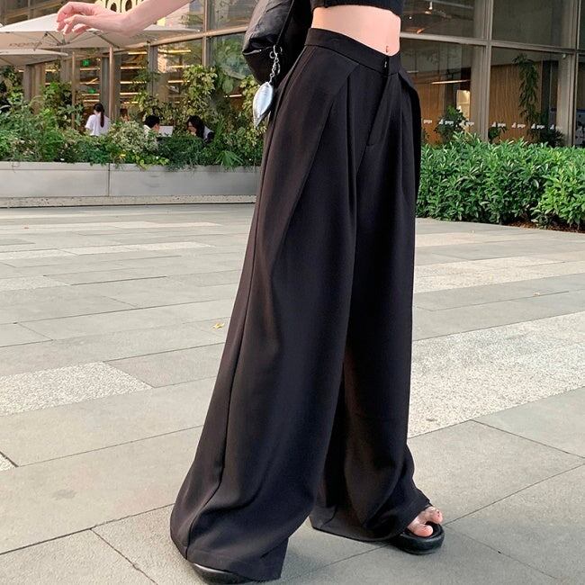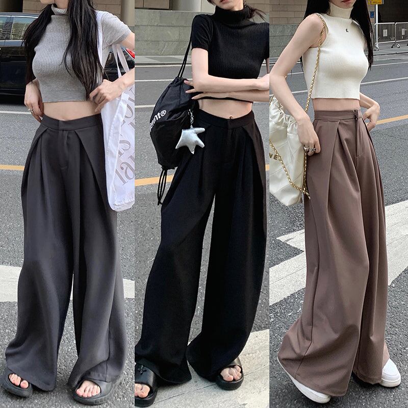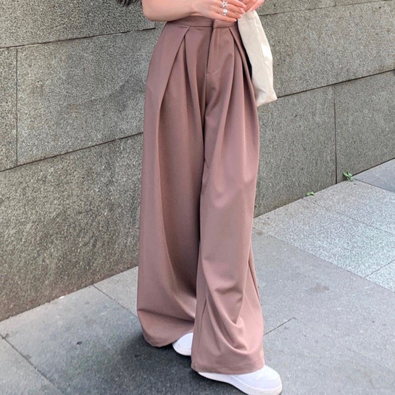 フレア ワイドパンツ レディース 夏 韓国 ファッション タック スタイルアップ テーラード パンツ