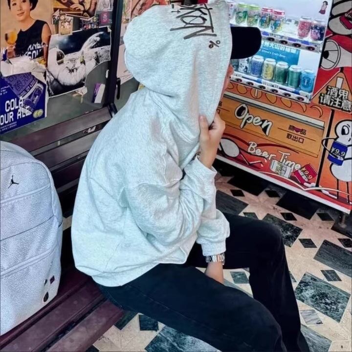 フード グラフィック パーカー レディース 韓国 ファッション ストリート トップス ロゴ 刺繍 裏起毛 ビッグシルエット フーディー