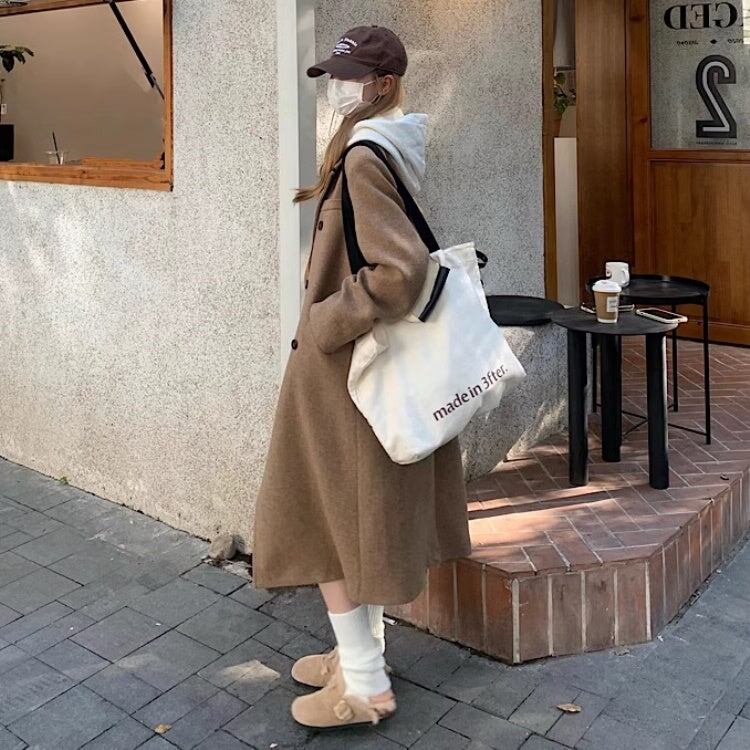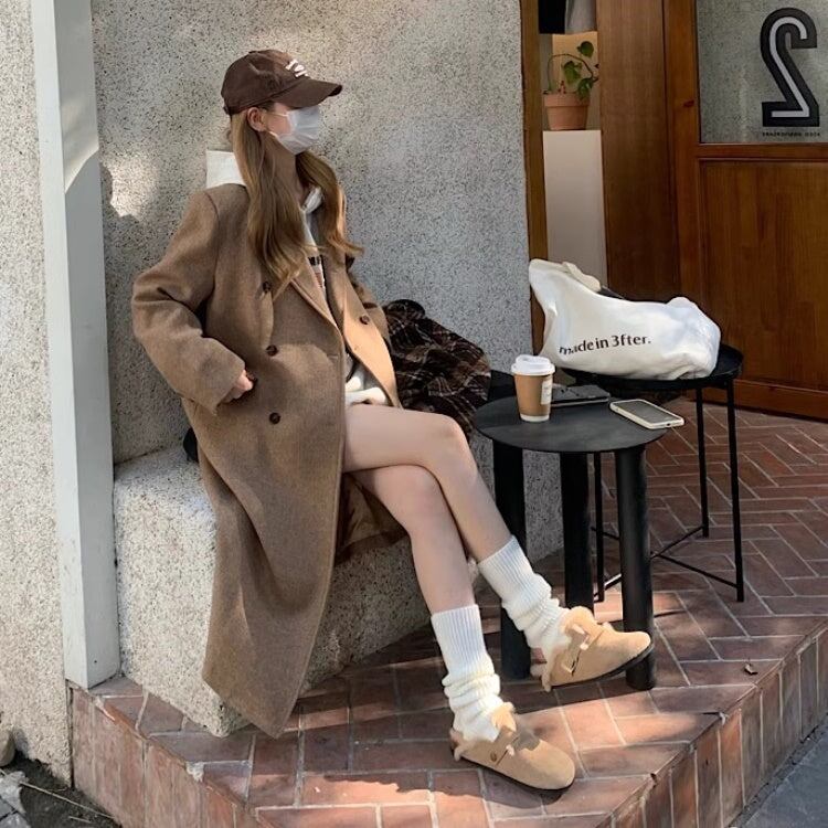 ロングコート レディース 韓国 ファッション シンプル ベーシック ダブルボタン ブラウンアウター 冬ジャケット 上品コート