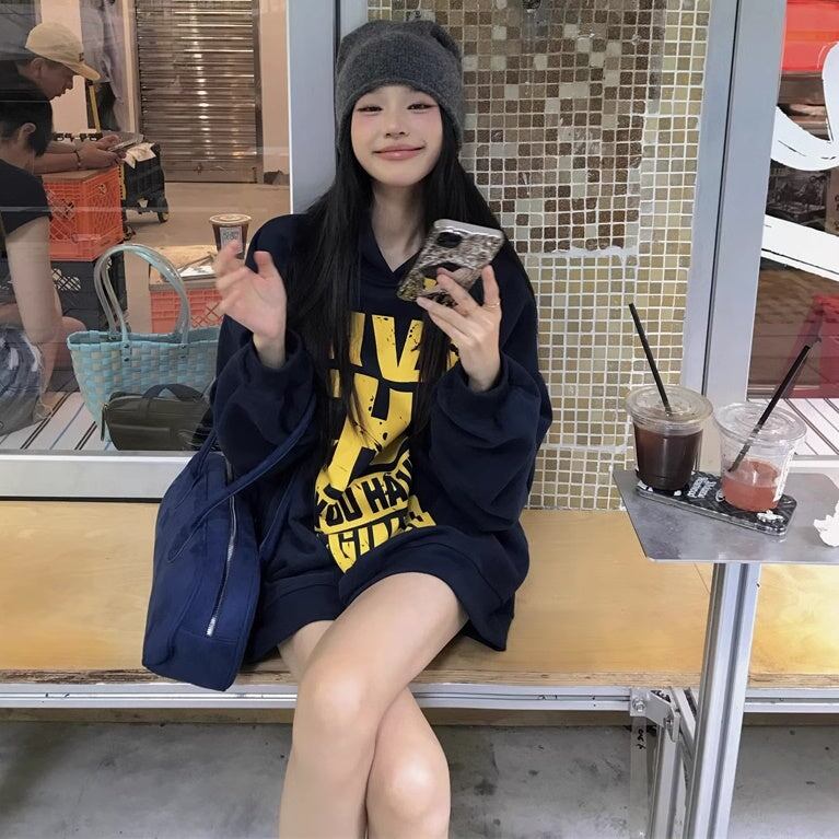 プリント グラフィック パーカー レディース 韓国 ファッション ビッグシルエット プルオーバー フードシャツ 秋冬トップス ストリート