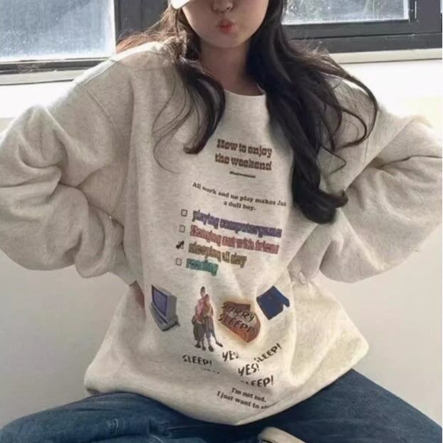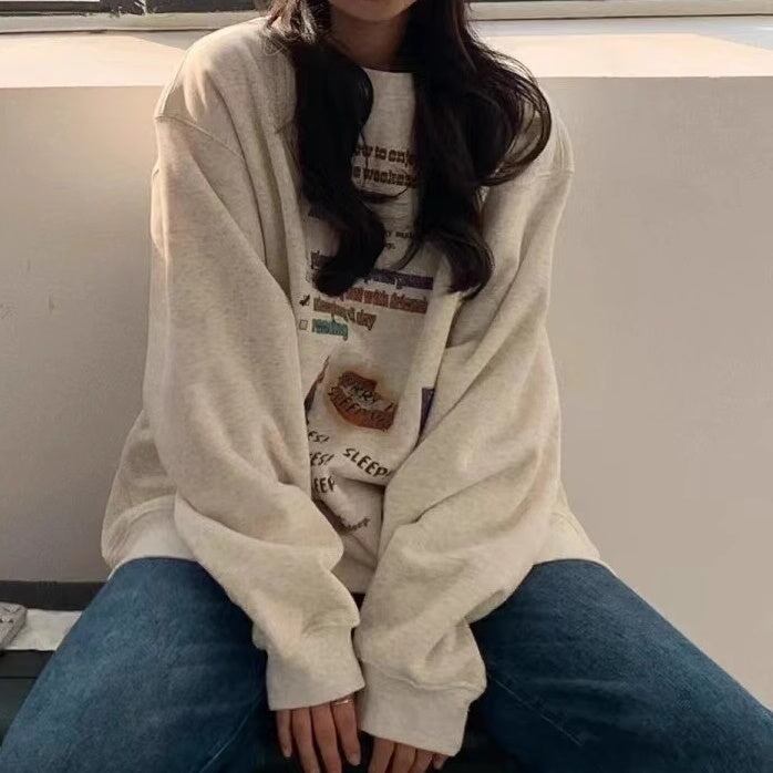 プリント トレーナー レディース 韓国 ファッション オーバーサイズ スウェット トップス かわいい グラフィック