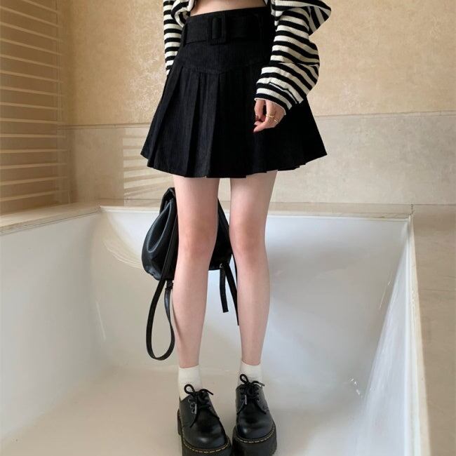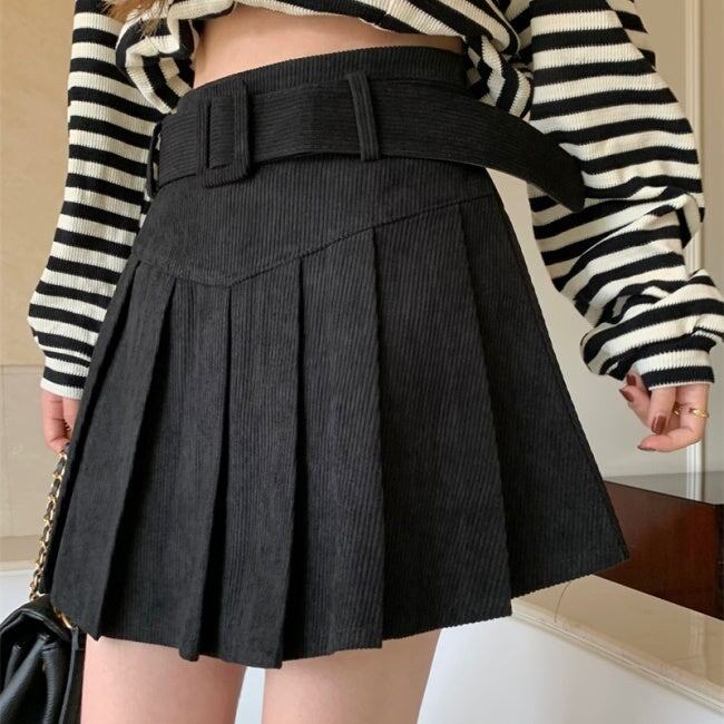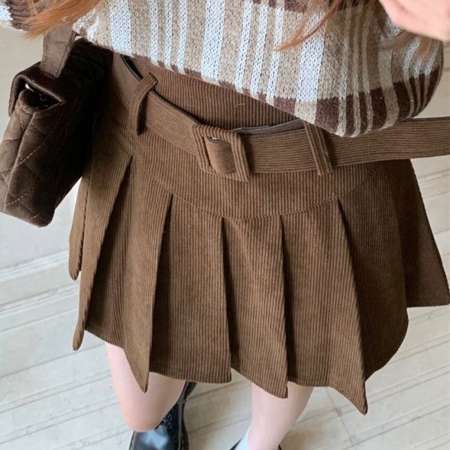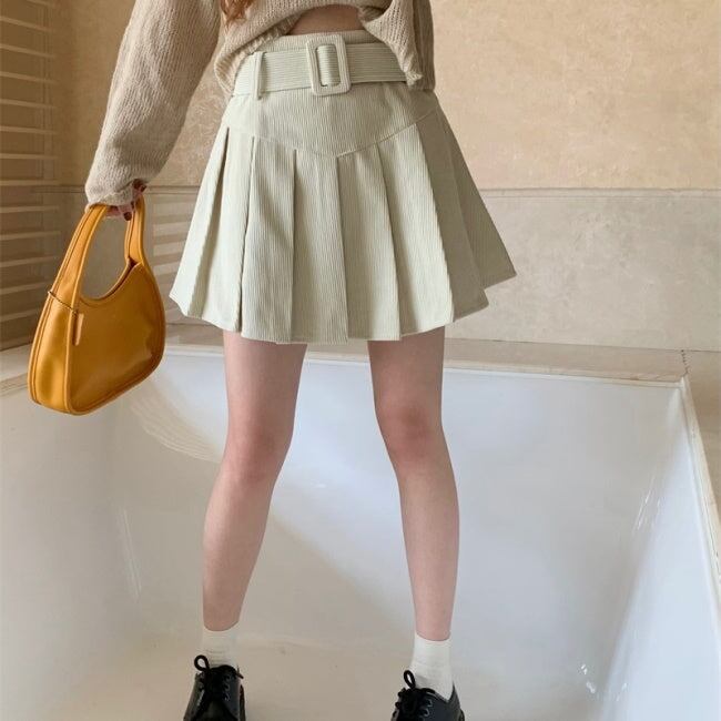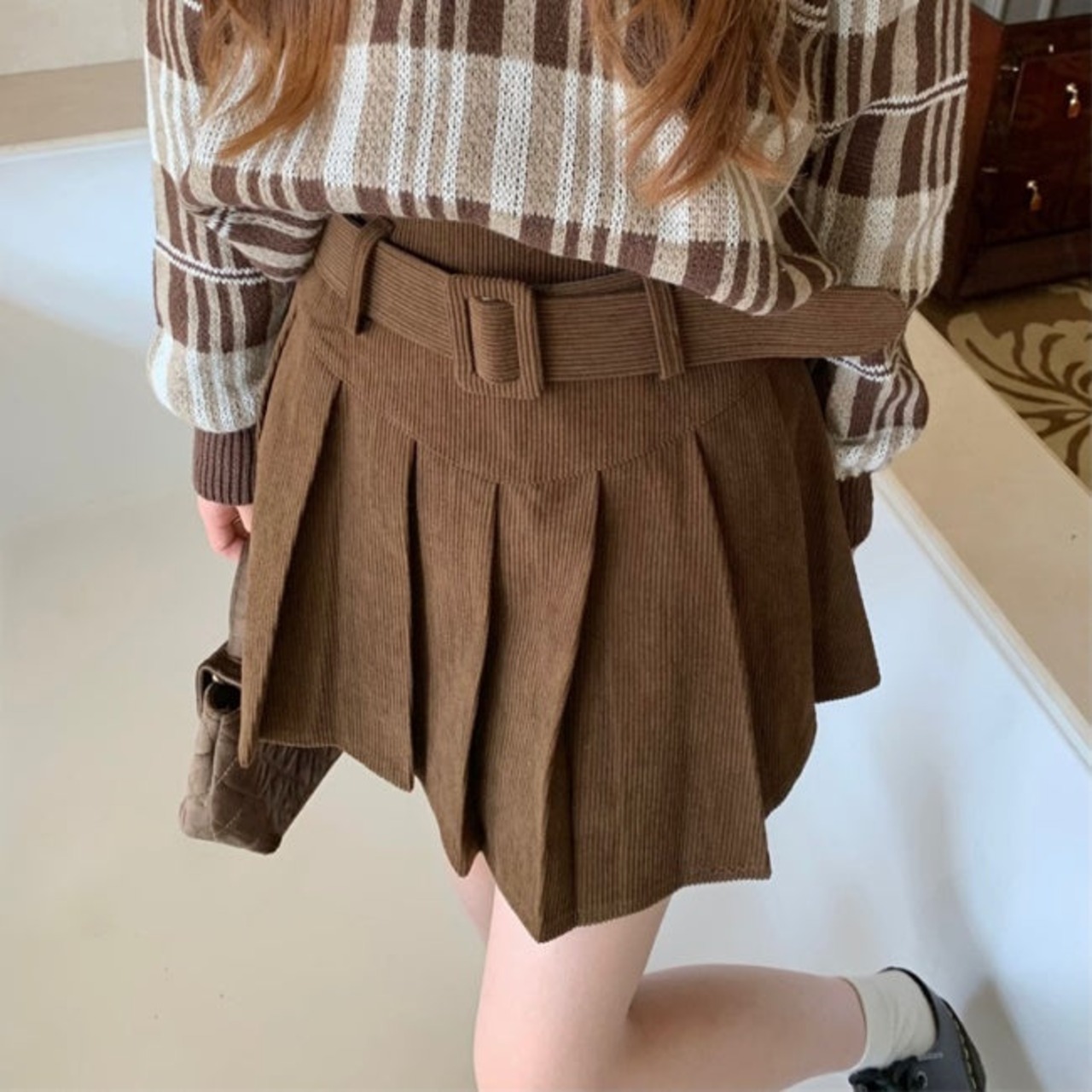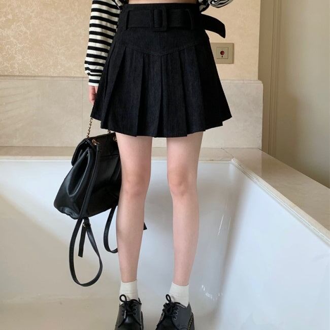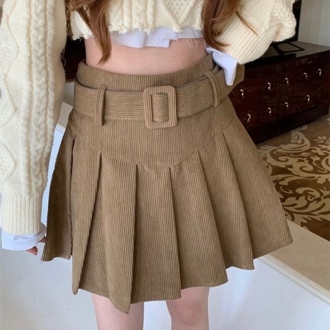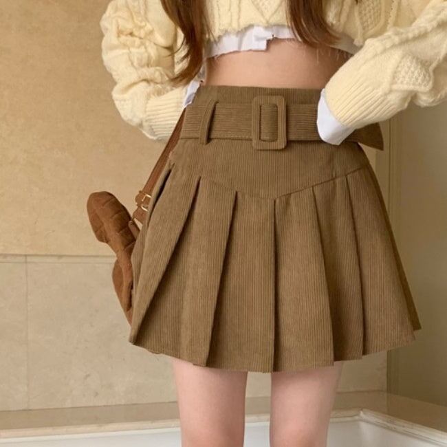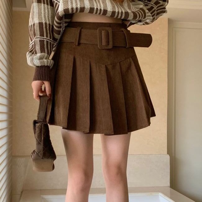 プリーツ ミニスカート コーデュロイ フレア スカート 韓国 ファッション レディース 春