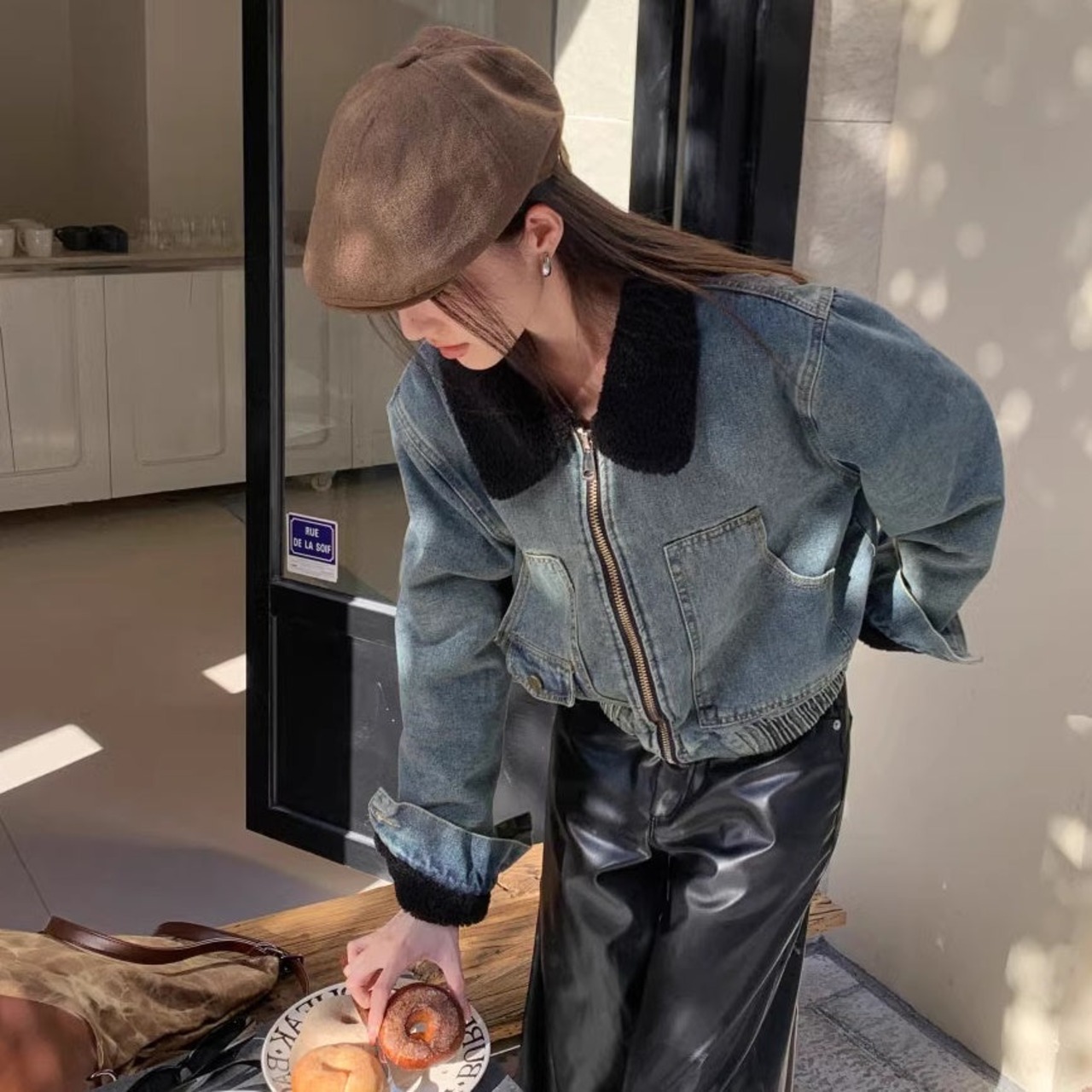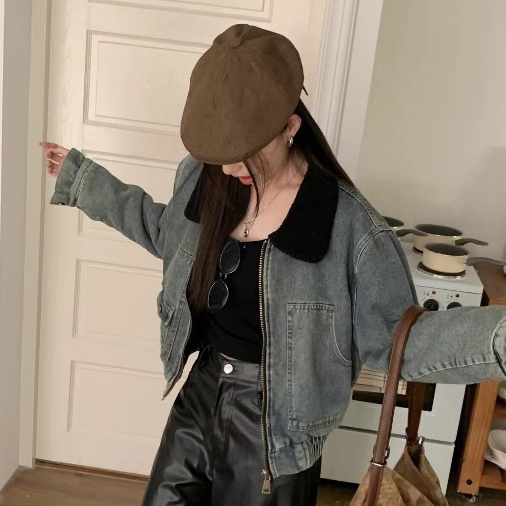 ボア デニムジャケット レディース 韓国 ファッション デニム ジップアウター ショート丈 防寒アウター 冬ジャケット あたたかジャケット おしゃれ