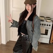 ブルゾン ボア レディース 韓国 ファッション デニム ジップアウター ショート丈 防寒アウター 冬ジャケット あたたかジャケット おしゃれ