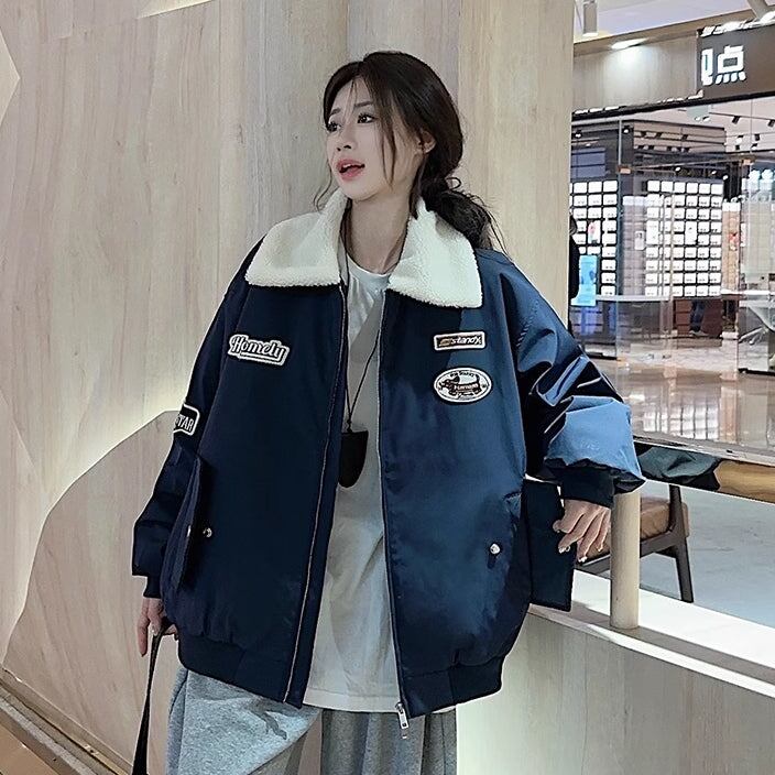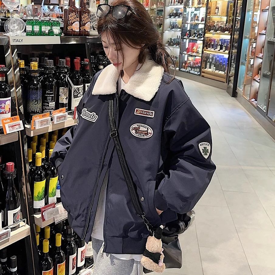 ボア フライトジャケット 韓国 アウター レディース ワッペン ロゴ キルティング かわいい ドカジャン