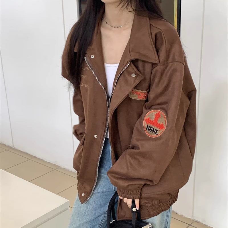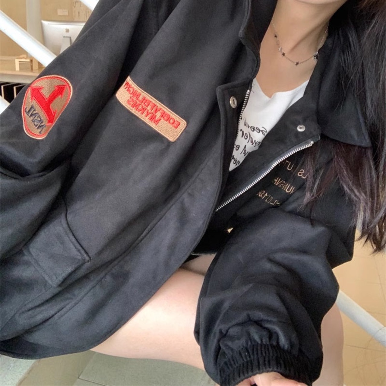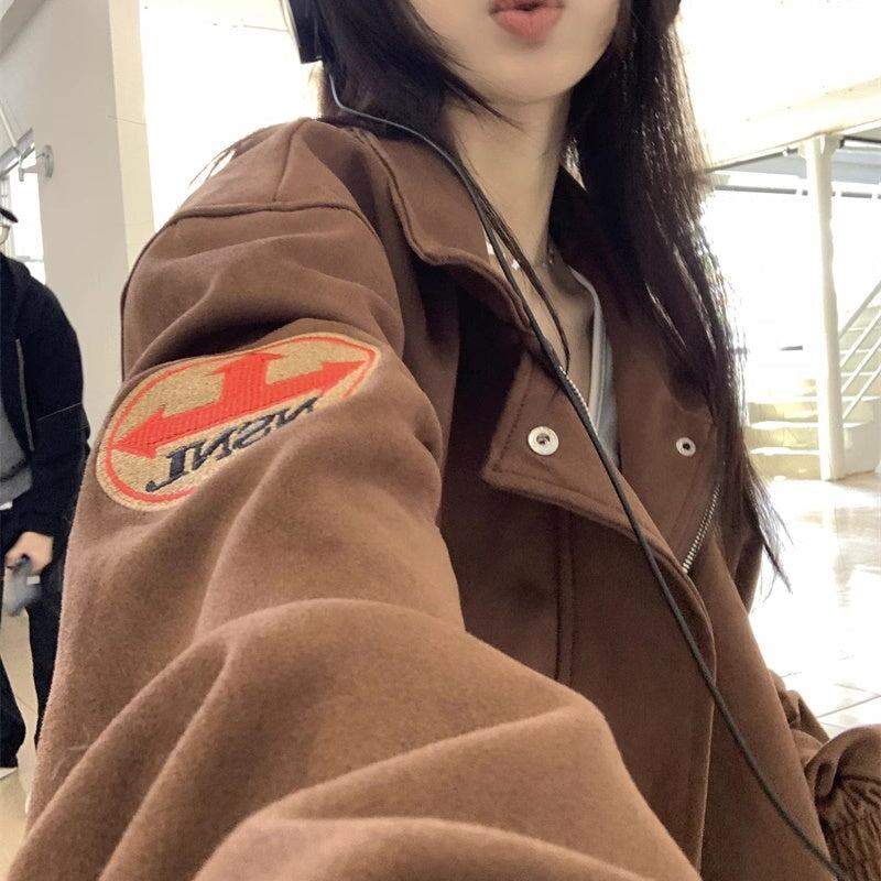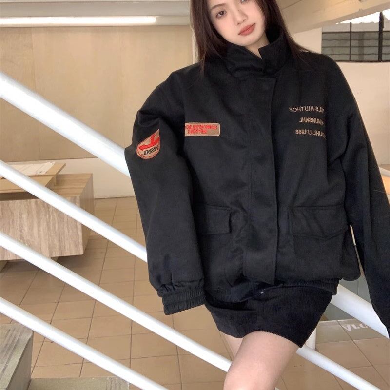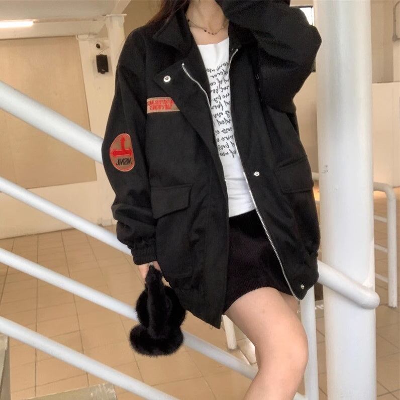 ブルゾン アウター レディース 韓国 ファッション アップリケ ロゴ 刺繍 オーバーサイズ ビッグシルエット