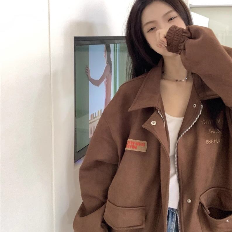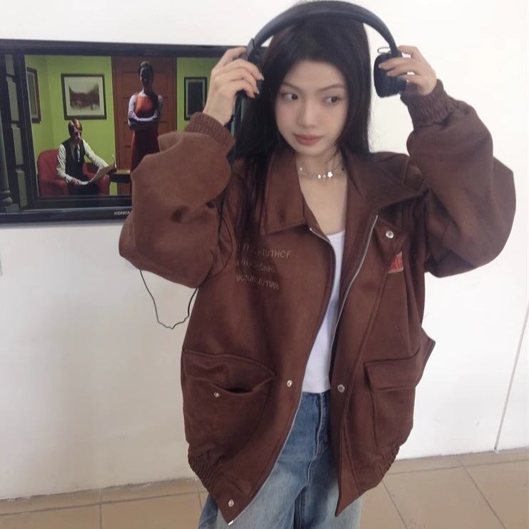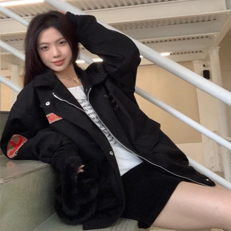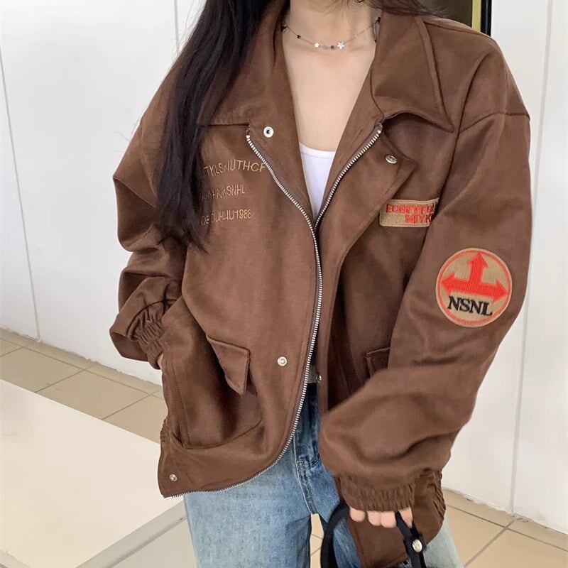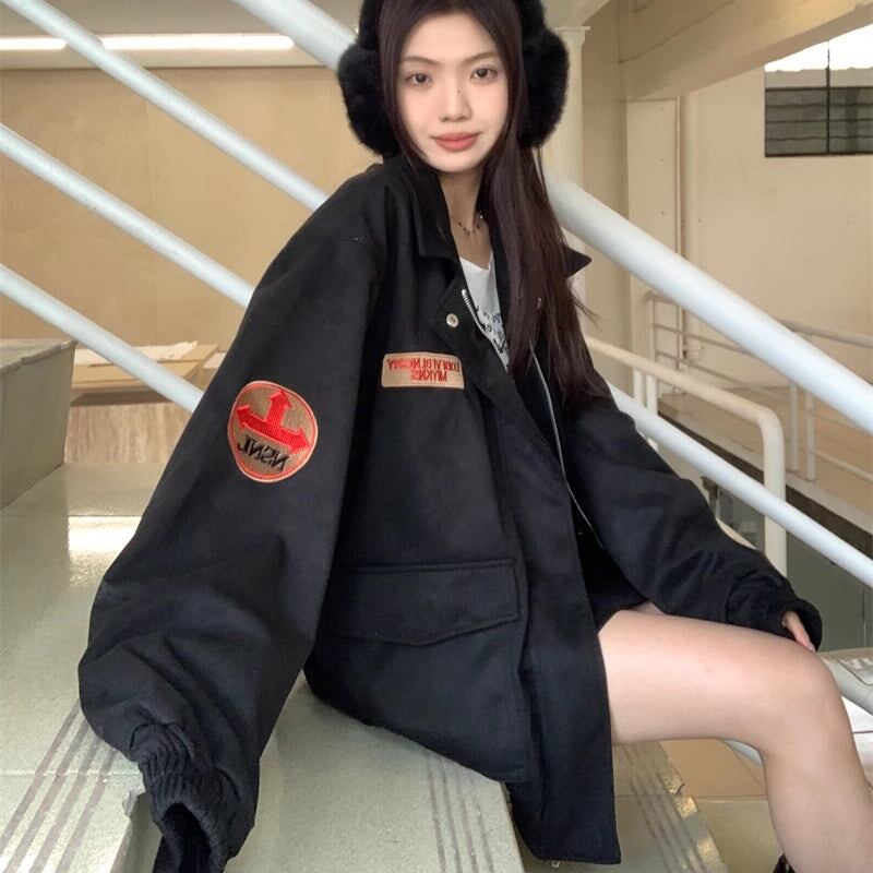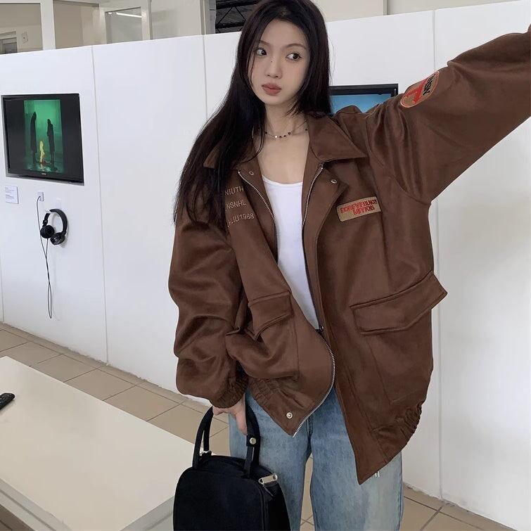ブルゾン アウター レディース 韓国 ファッション アップリケ ロゴ 刺繍 オーバーサイズ ビッグシルエット