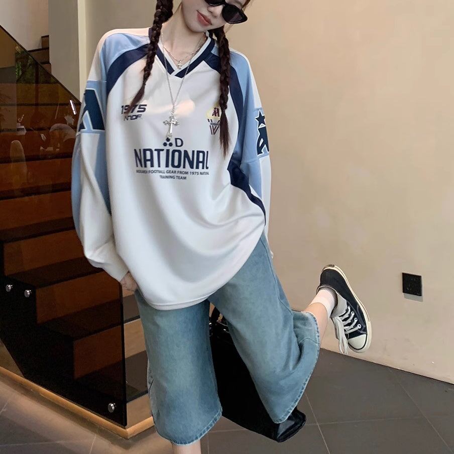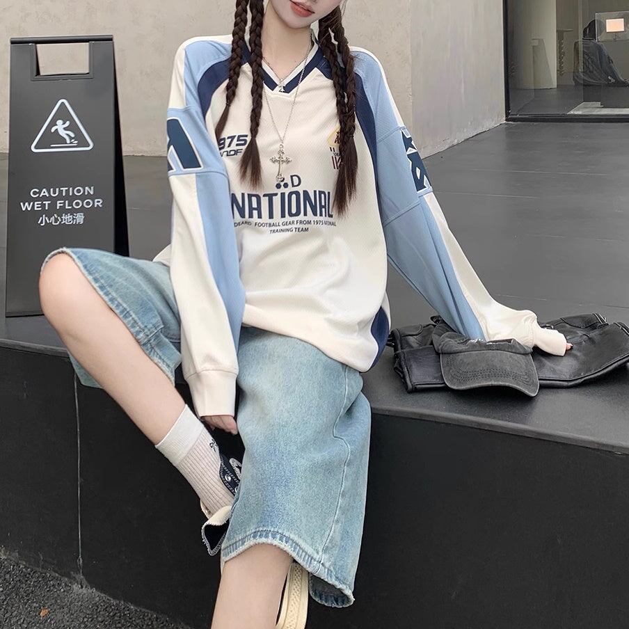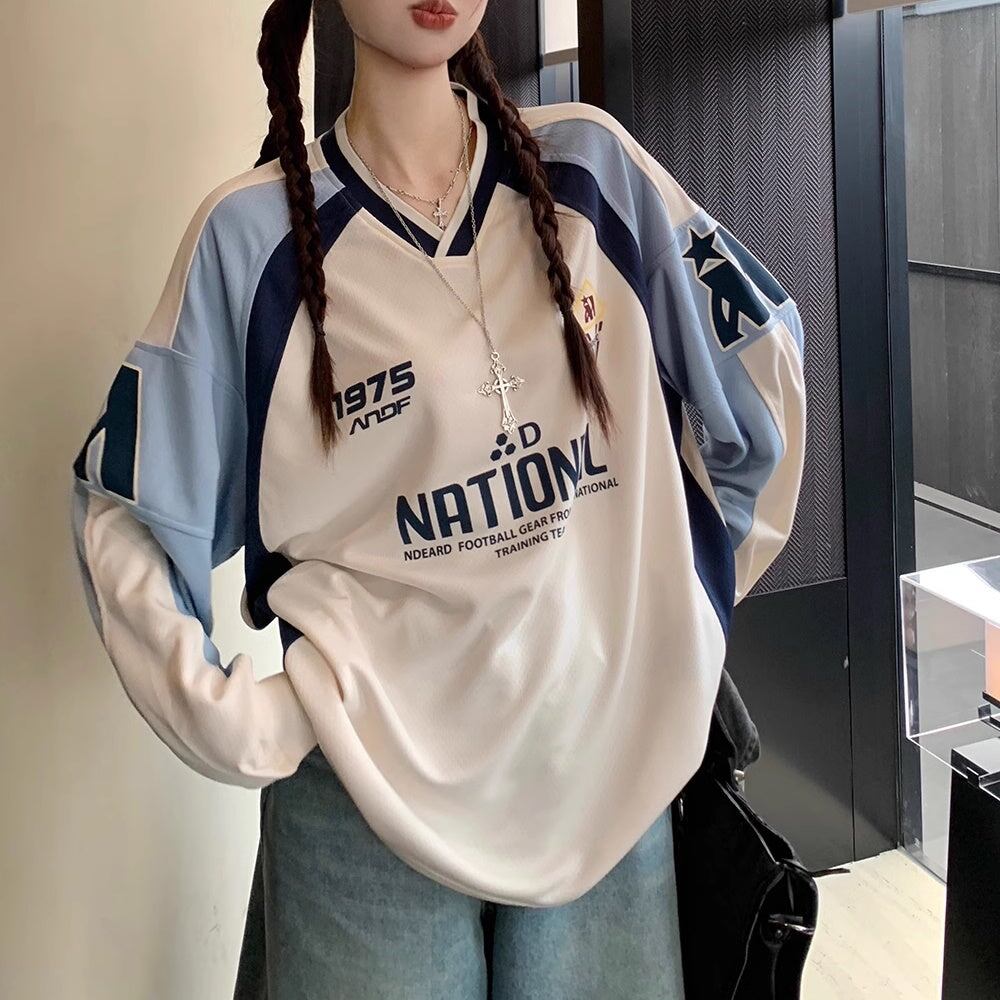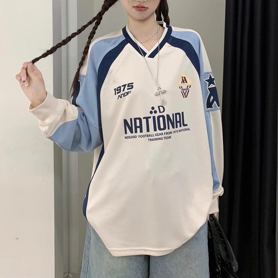 ユニフォーム ロンT レディース 韓国 ファッション 長袖 ナンバー ロゴ オーバーサイズ スポーティー トップス