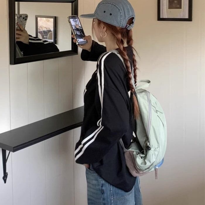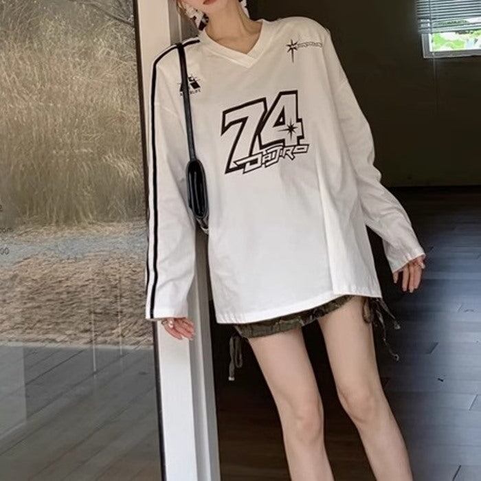 長袖 Tシャツ レディース 韓国 ファッション ロンT ナンバーロゴ 袖ライン オーバーサイズ フリーサイズ メンズライク 男女兼用デザイン