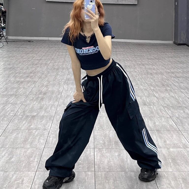 ライン ジャージ カーゴパンツ レディース 韓国 ファッション サイドライン ワイドパンツ サイドポケット
