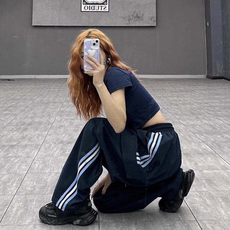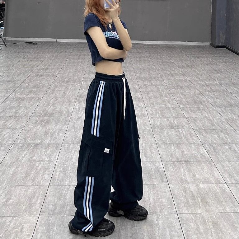 ラインパンツ レディース 韓国 ファッション サイドライン ワイドシルエット スポーツ カジュアルパンツ ストリート ボリュームパンツ
