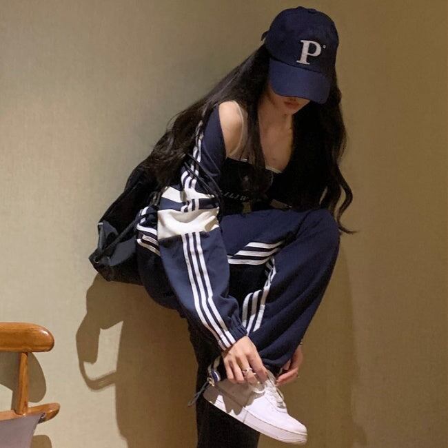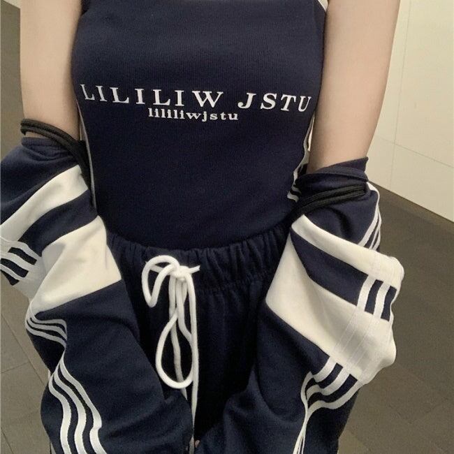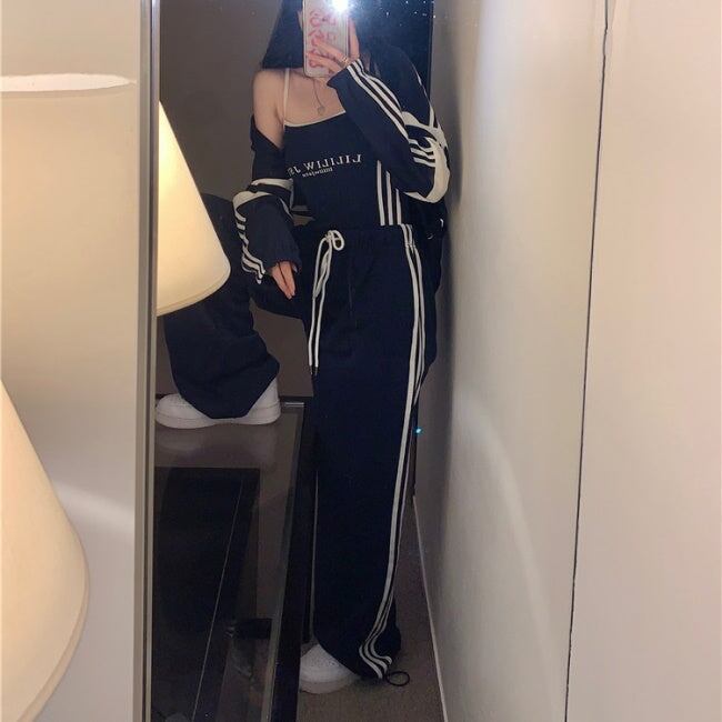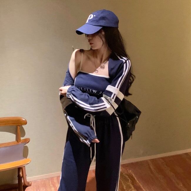 ライン ジャージ セットアップ 3点セット レディース 韓国 ファッション おしゃれジャージ キャミソール トラックトップ ラインパンツ ロゴ スポーツ クロップトップス