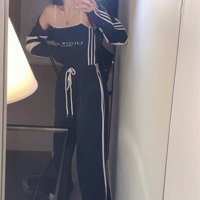 ジャージ セットアップ 3点セット レディース 韓国 ファッション おしゃれジャージ キャミソール トラックトップ ラインパンツ ロゴ スポーツ セットアップ