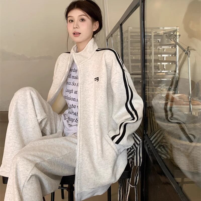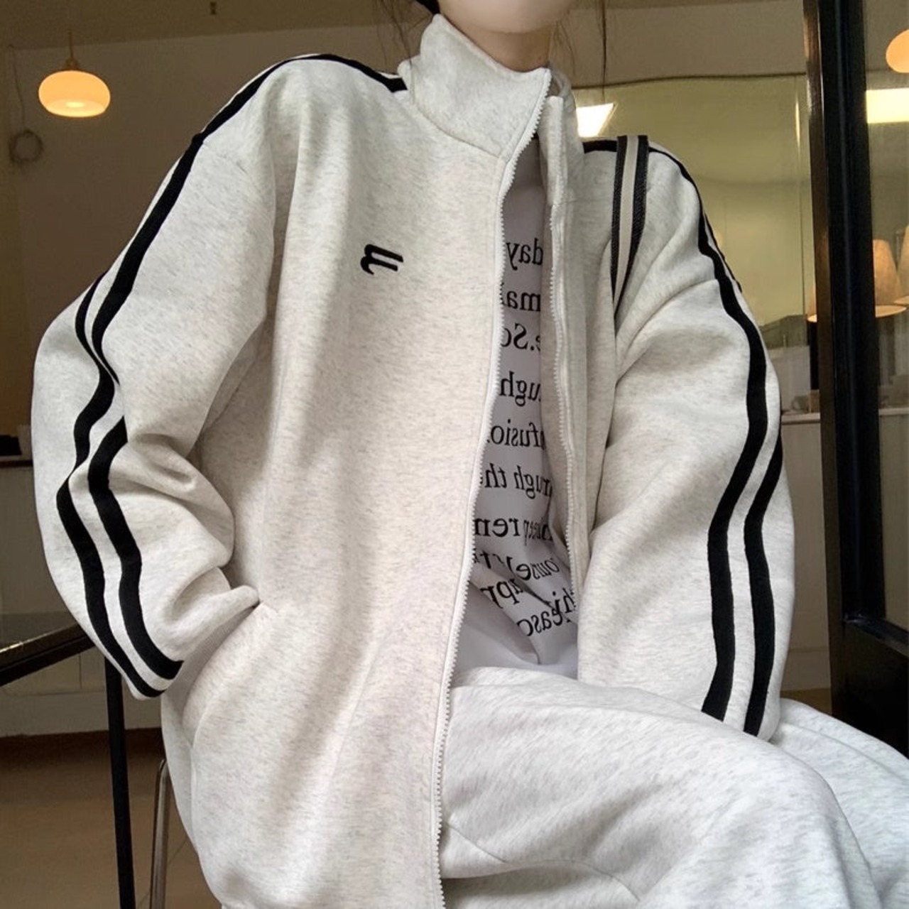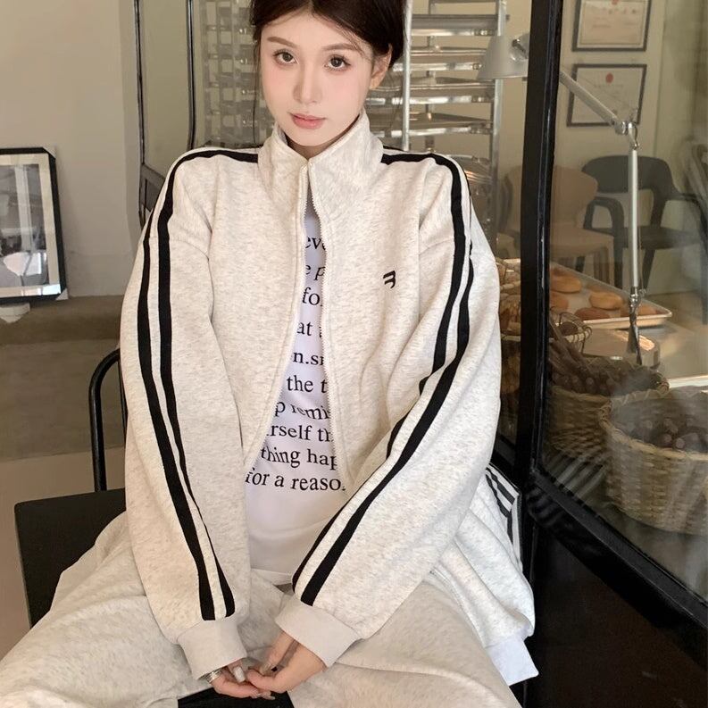 ジャージセットアップ レディース 韓国 ファッション スウェット サイドライン ワンポイントロゴ 白ジャージ おしゃれジャージ