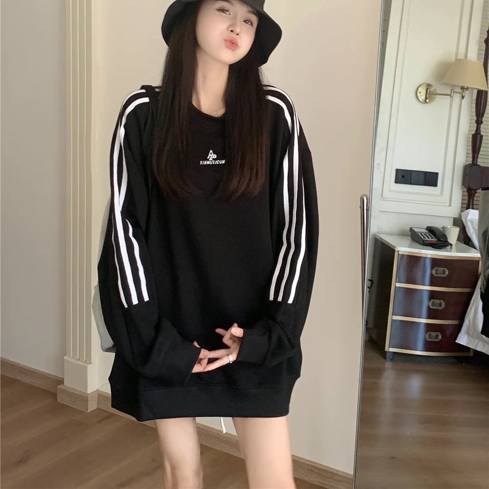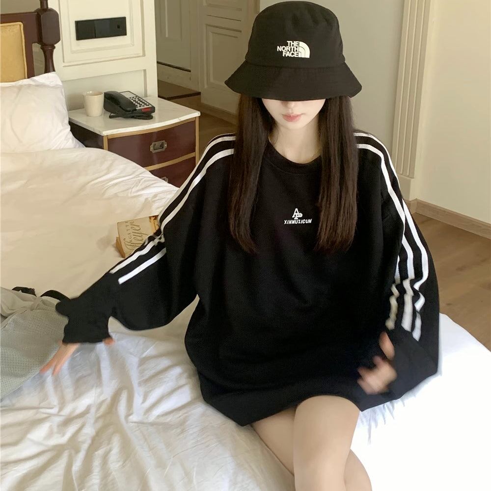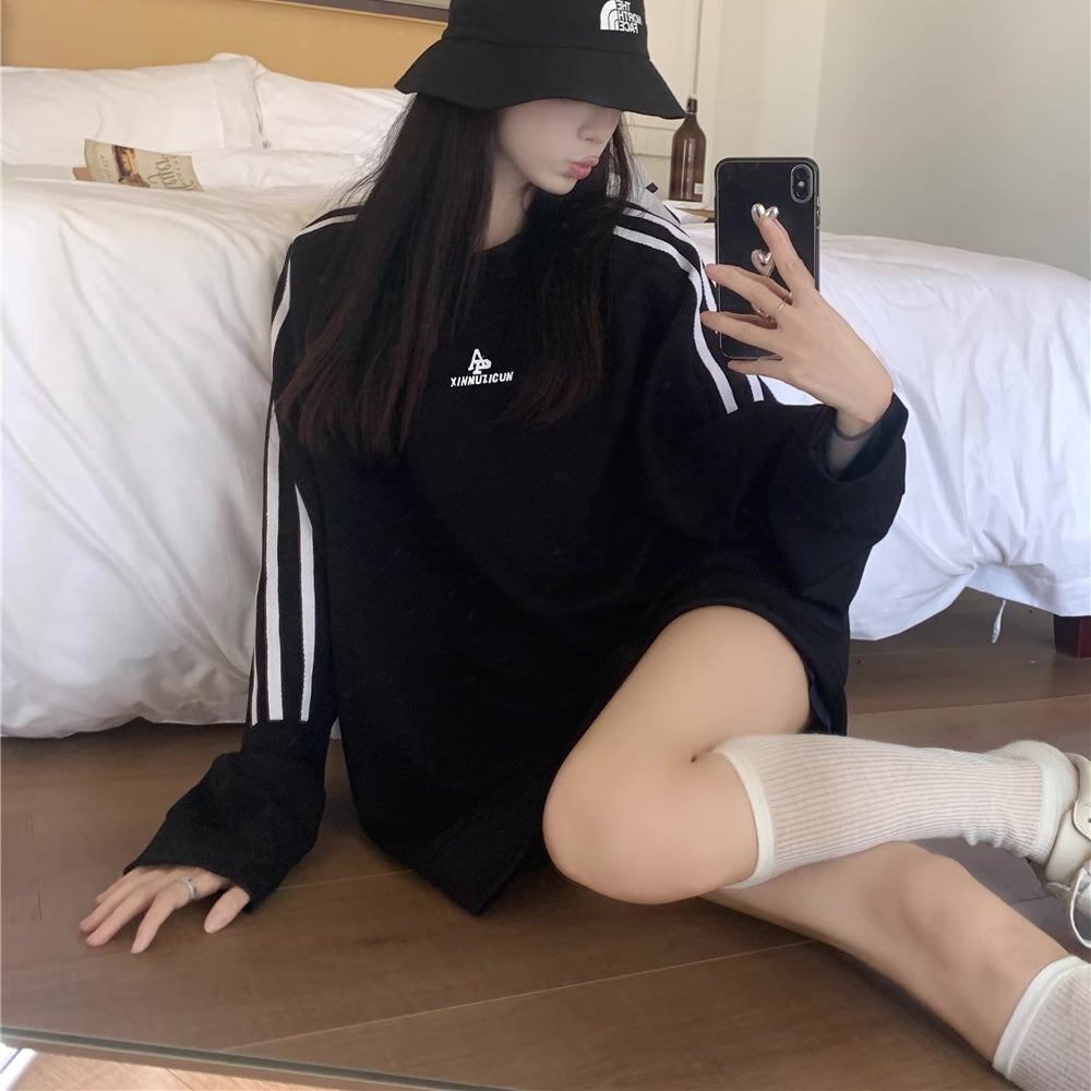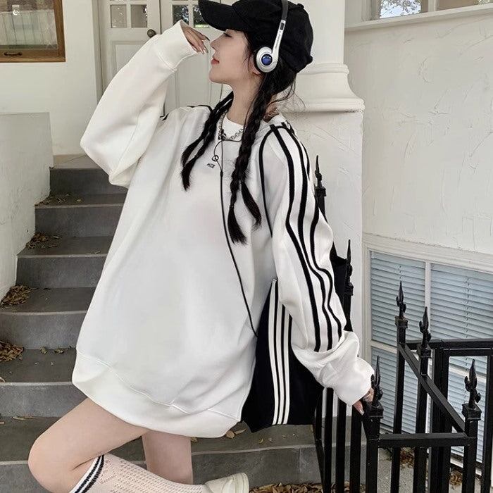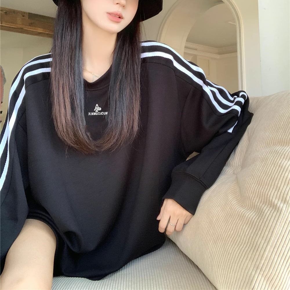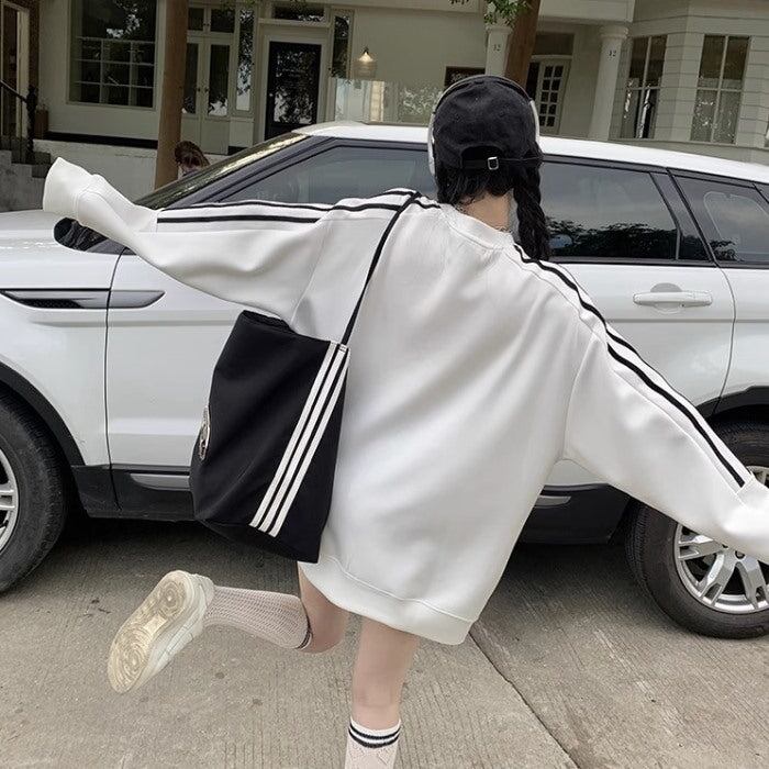スウェット トレーナー レディース 韓国 ファッション 裏起毛? 袖ライン ロゴ プリント モノトーン ライン スポーツ 男女兼用 ビッグシルエット オーバーサイズ