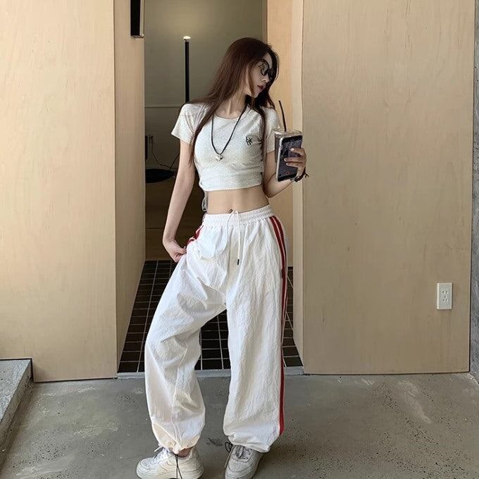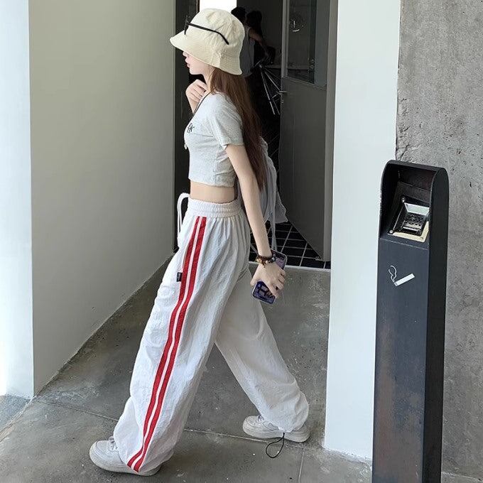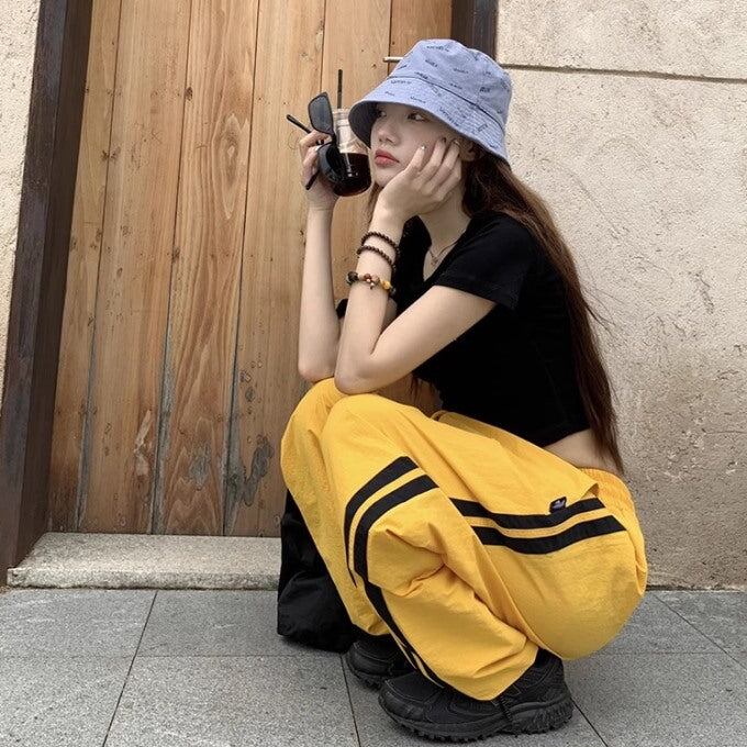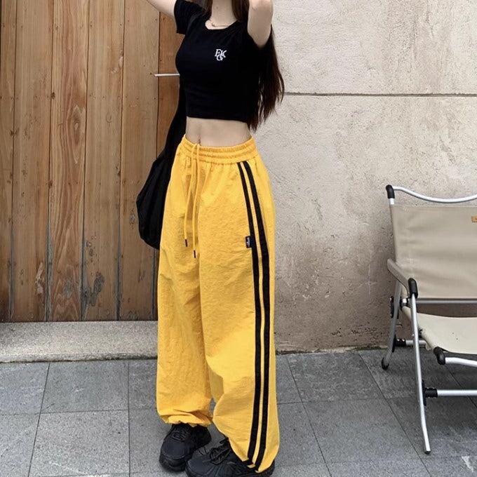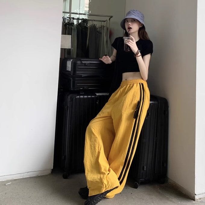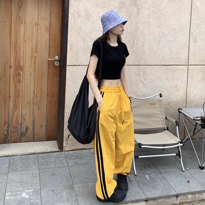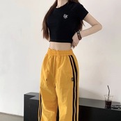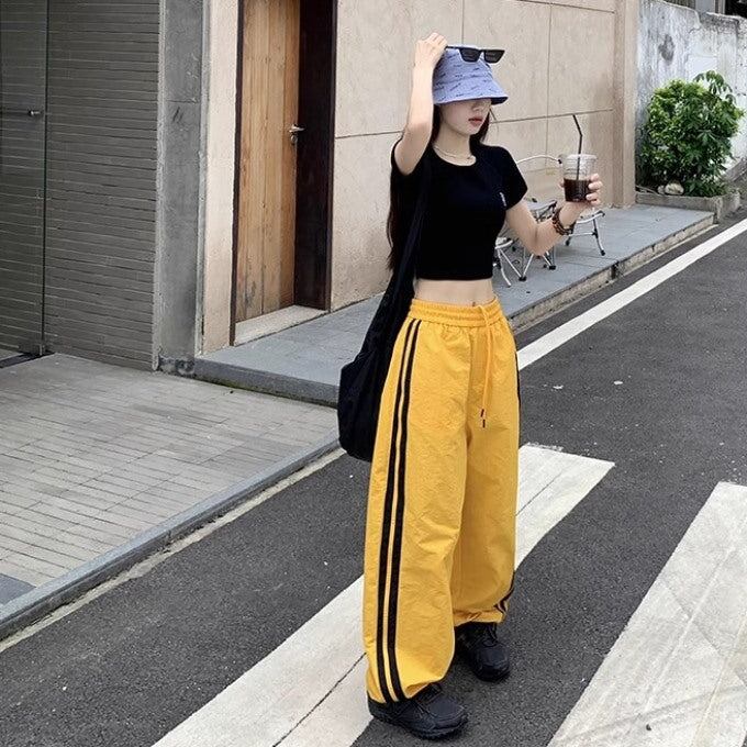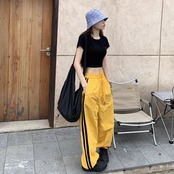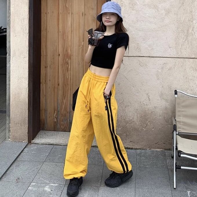 ライン パラシュートパンツ レディース 韓国 ファッション ワイド ナイロンパンツ サイドライン シャカシャカ パンツ
