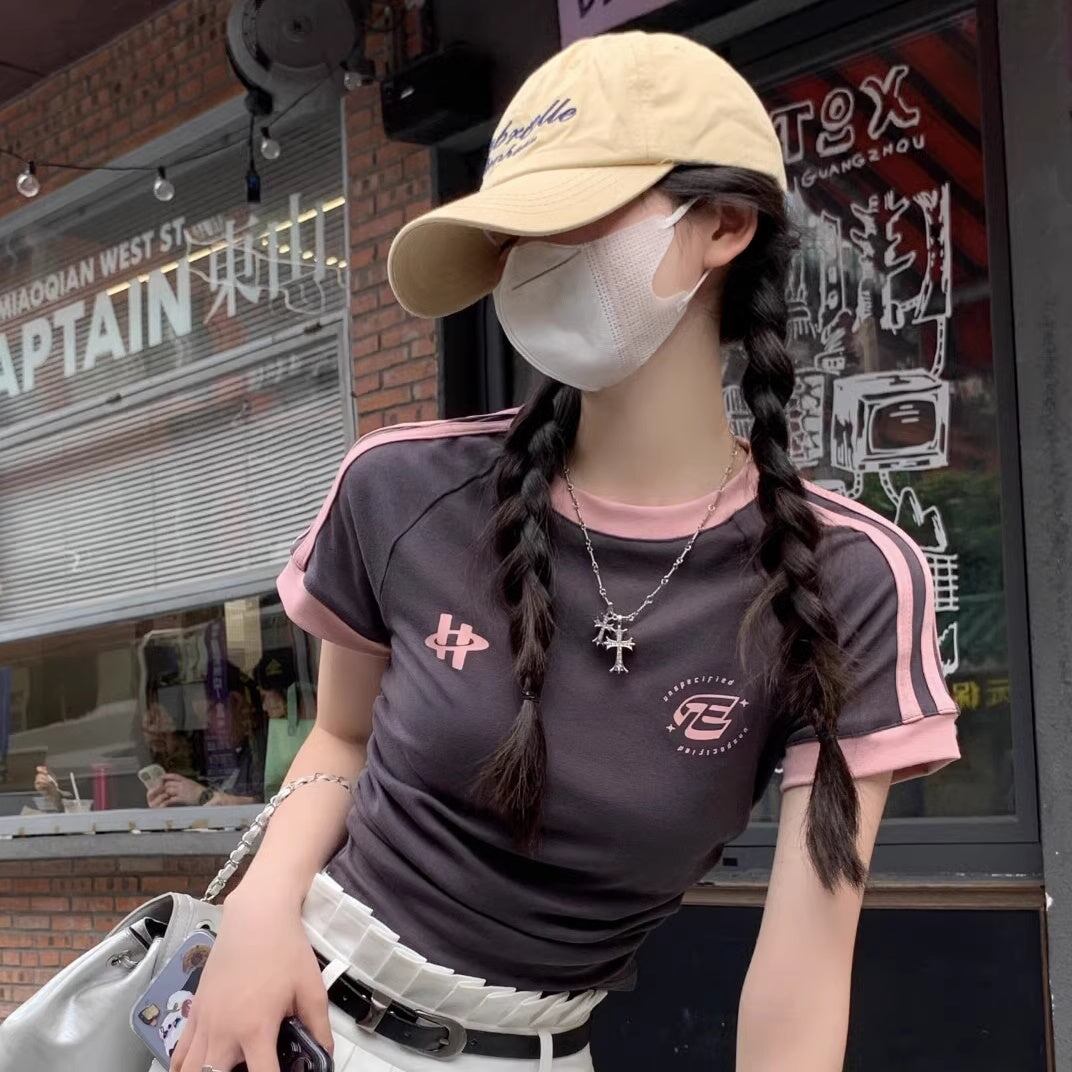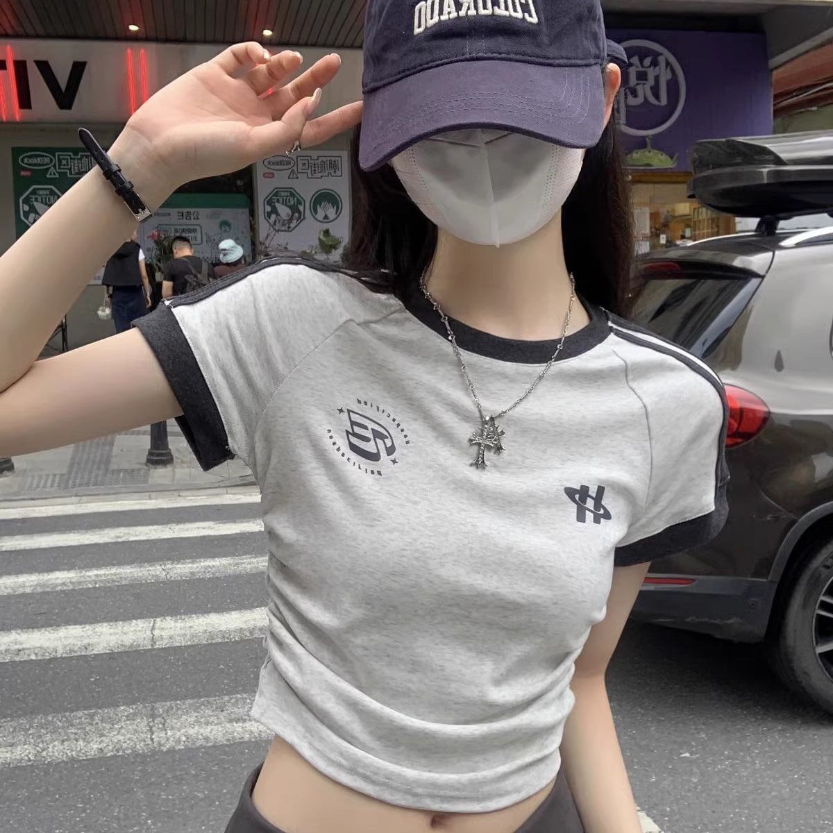 ライン リンガー クロップド Tシャツ レディース 韓国 ファッション バックプリント ショート丈 チビT