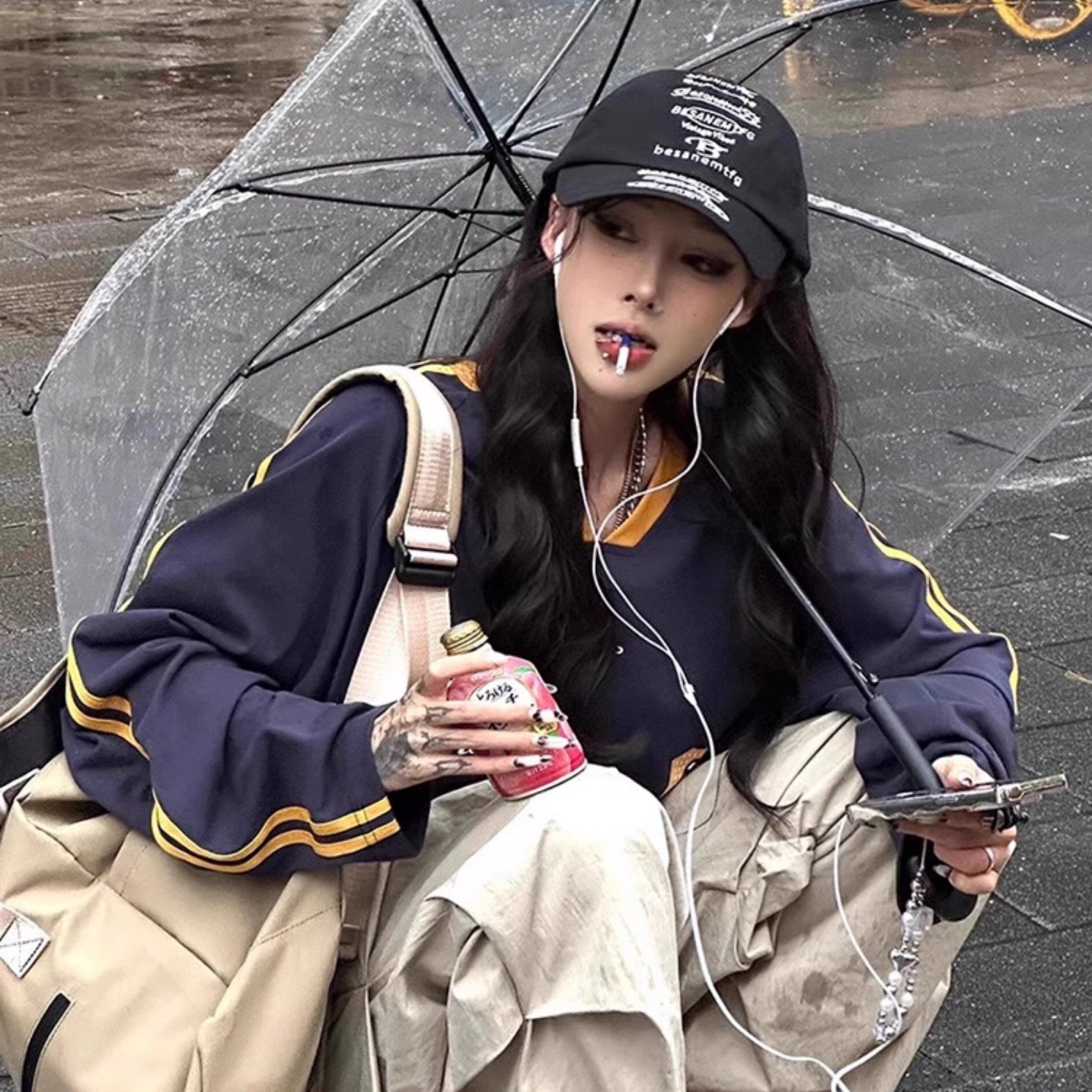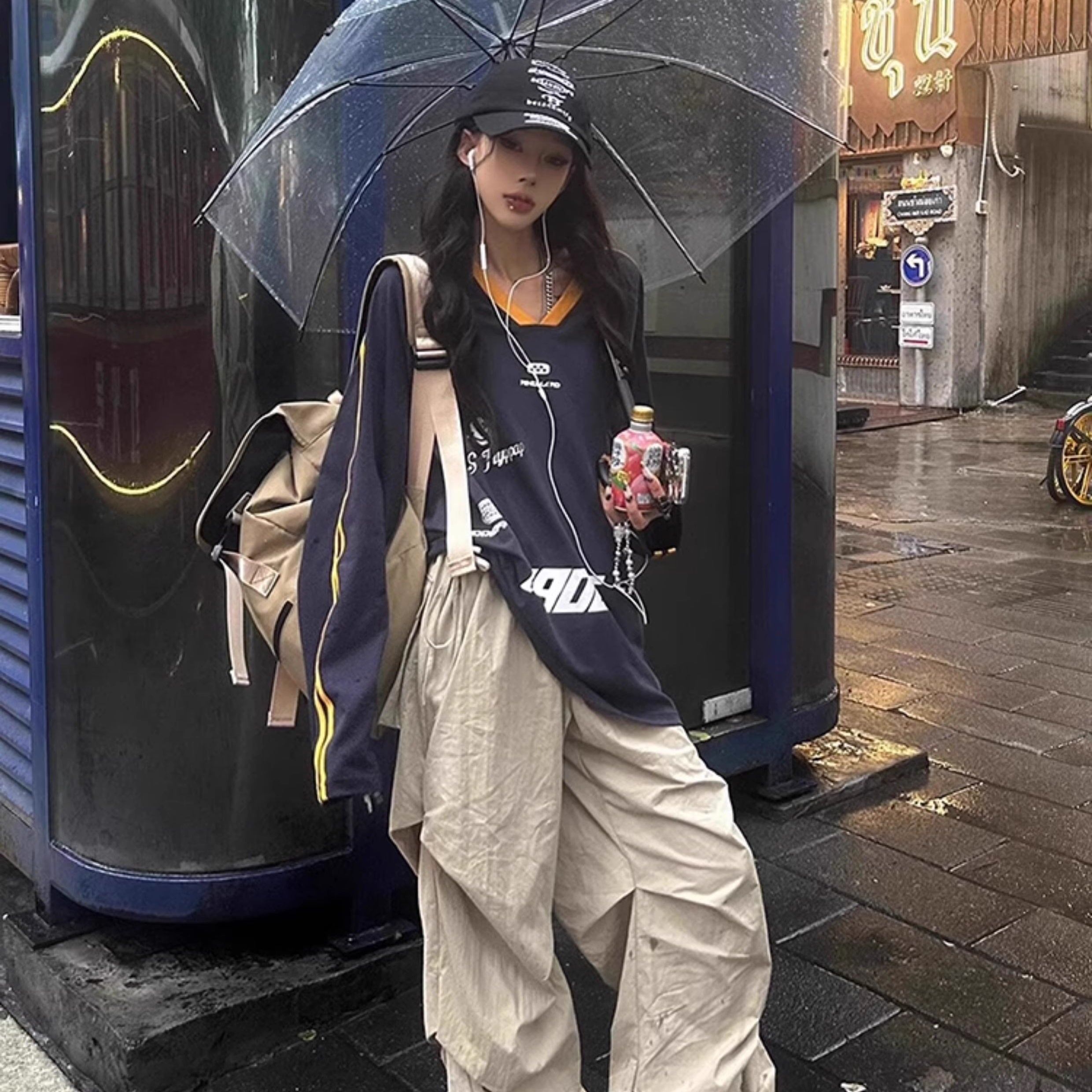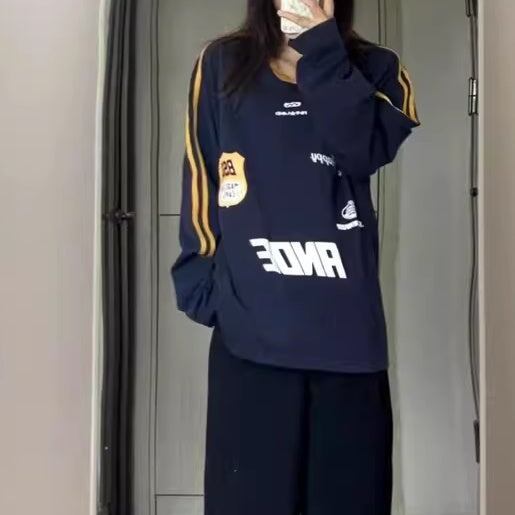 ライン ロングTシャツ レディース 韓国 ファッション ロンT ゲームシャツ ロゴプリント スポーティ ストリート トップス