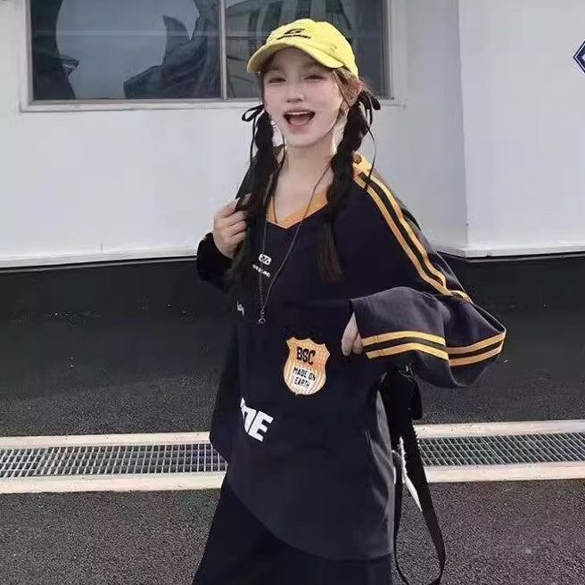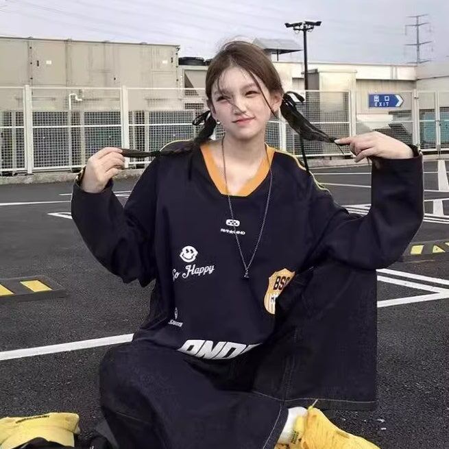Tシャツ 長そで レディース 韓国 ファッション ロンT ゲームシャツ ロゴプリント サイドライン コントラスト メンズライク