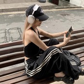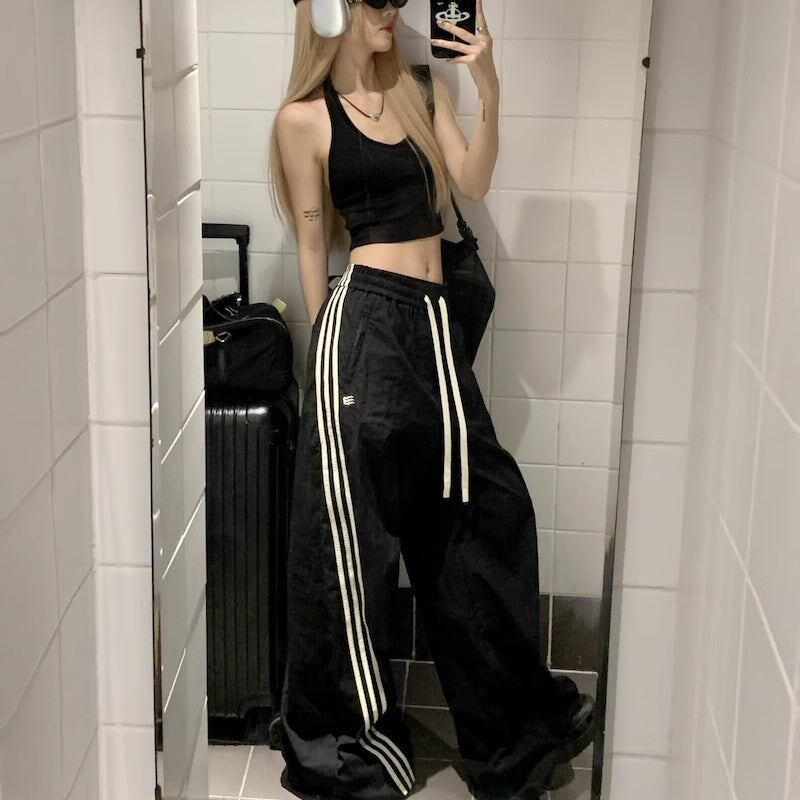 ラインパンツ レディース 韓国 ファッション? ロング サイドライン? ストリートカジュアル モップパンツ