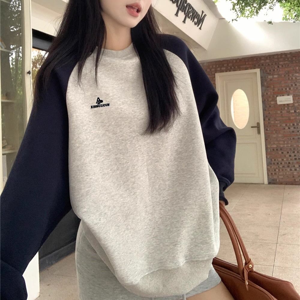 ラグラン トレーナー レディース 韓国 ファッション ワンポピント ロゴ ビッグシルエット スウェット