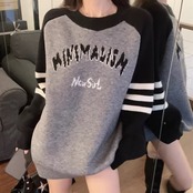 ラグラン ロゴ ニット レディース 韓国 ファッション ライン袖 バイカラー 秋冬トップス