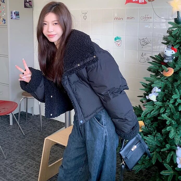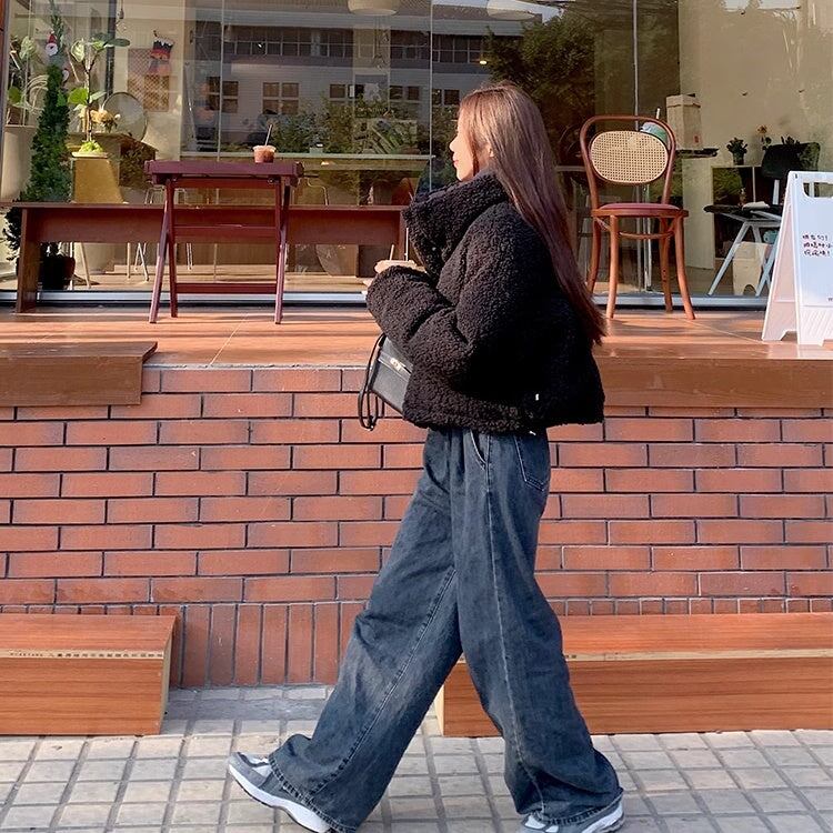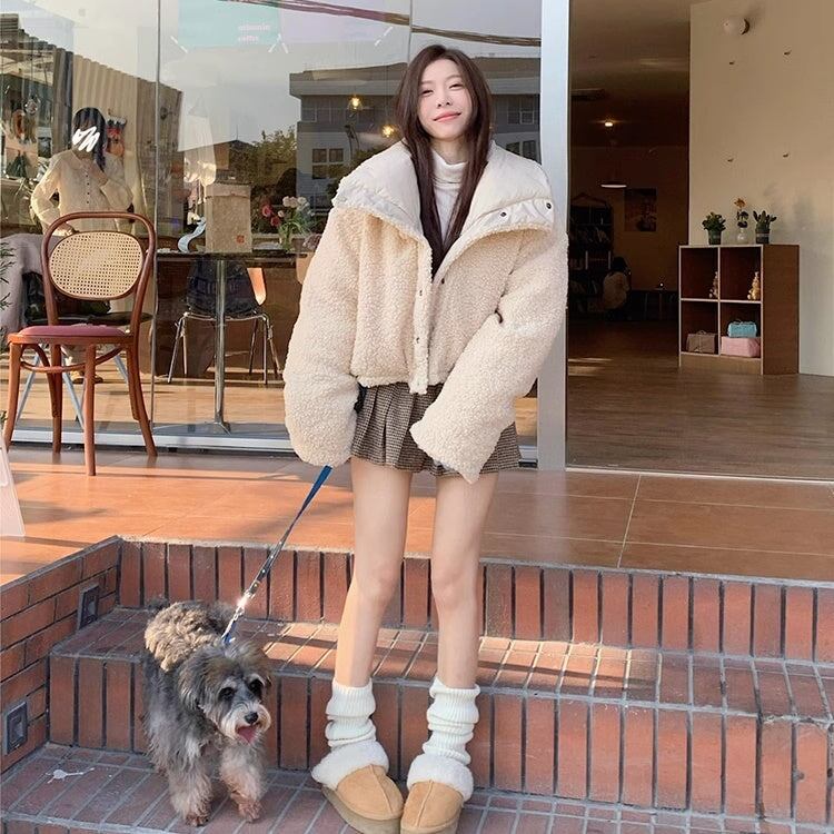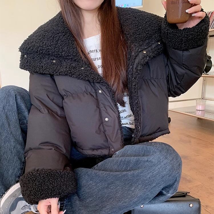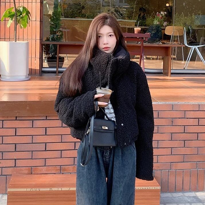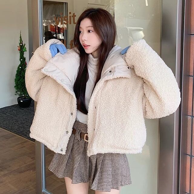 ボアジャケット レディース 韓国 ファッション リバーシブル 2way 中綿 ふんわり もこもこ 内ボア 襟ボア かわいい ガーリー
