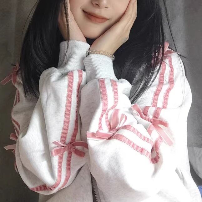 セットアップ ジャージ レディース 韓国 ファッション リボン サイドラインテープ ガーリー 上下2点セット