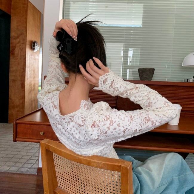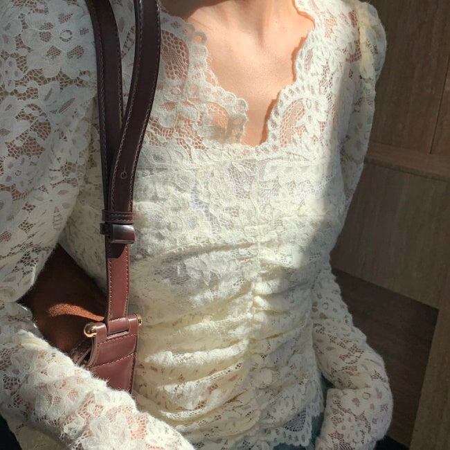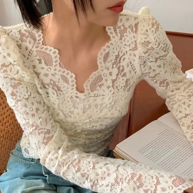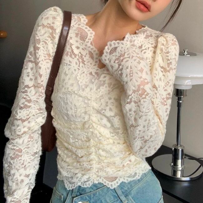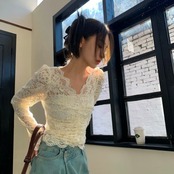 レース ブラウス カットソー レディース 刺繍 花柄 プルオーバー 韓国 ファッション シアー シースルー トップス