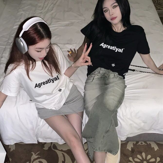 ロゴ Tシャツ レディース 韓国 ファッション オーバーサイズ ストリート 夏 半袖 T トップス
