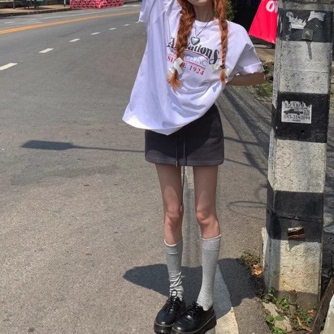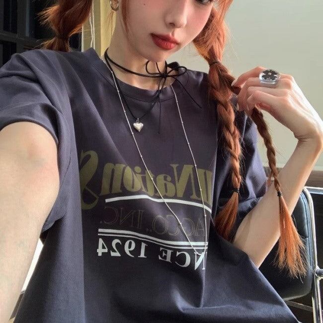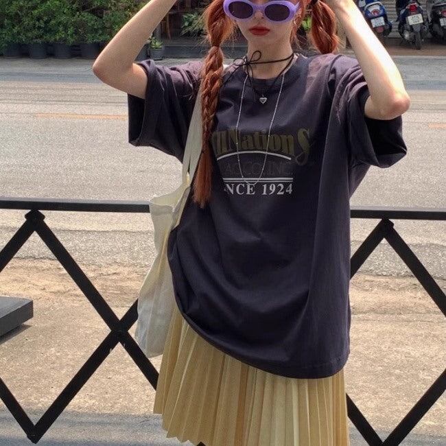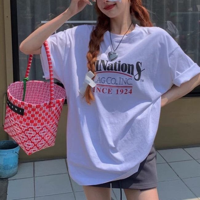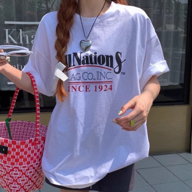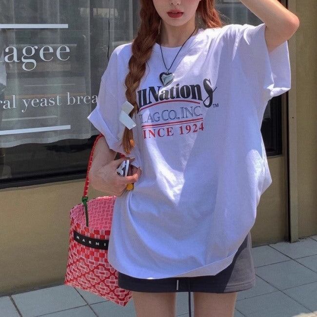 ロゴ Tシャツ レディース 韓国 ファッション ロゴグラフィック オーバーサイズ T 夏トップス