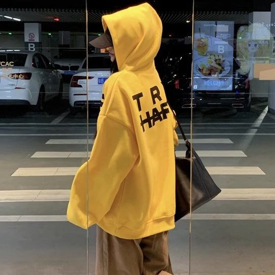 パーカー スウェット レディース 韓国 ファッション ロゴ プリント イエロー フードトレーナー カジュアル